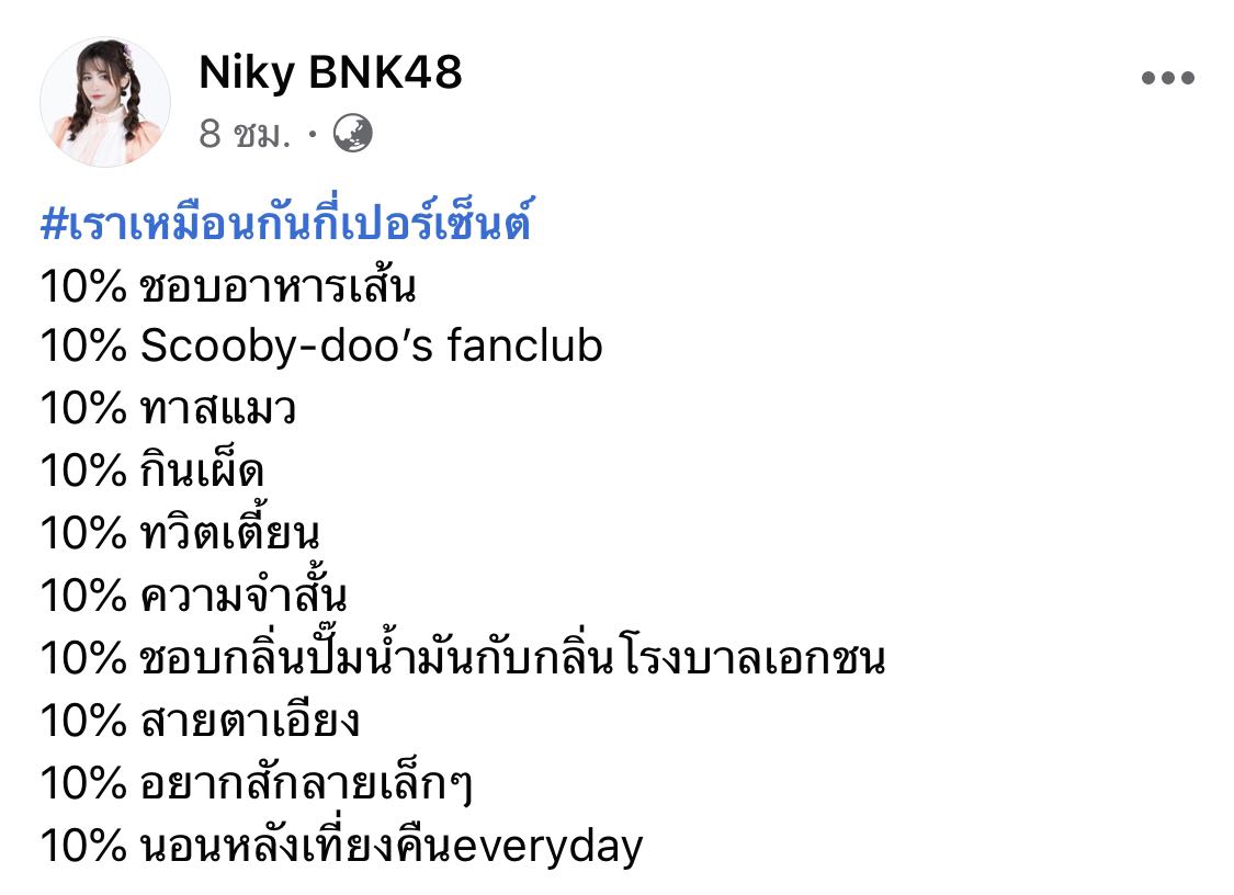 มาเล่นกัน #เราเหมือนกันกี่เปอร์เซ็นต์ ของน้องนิกี้