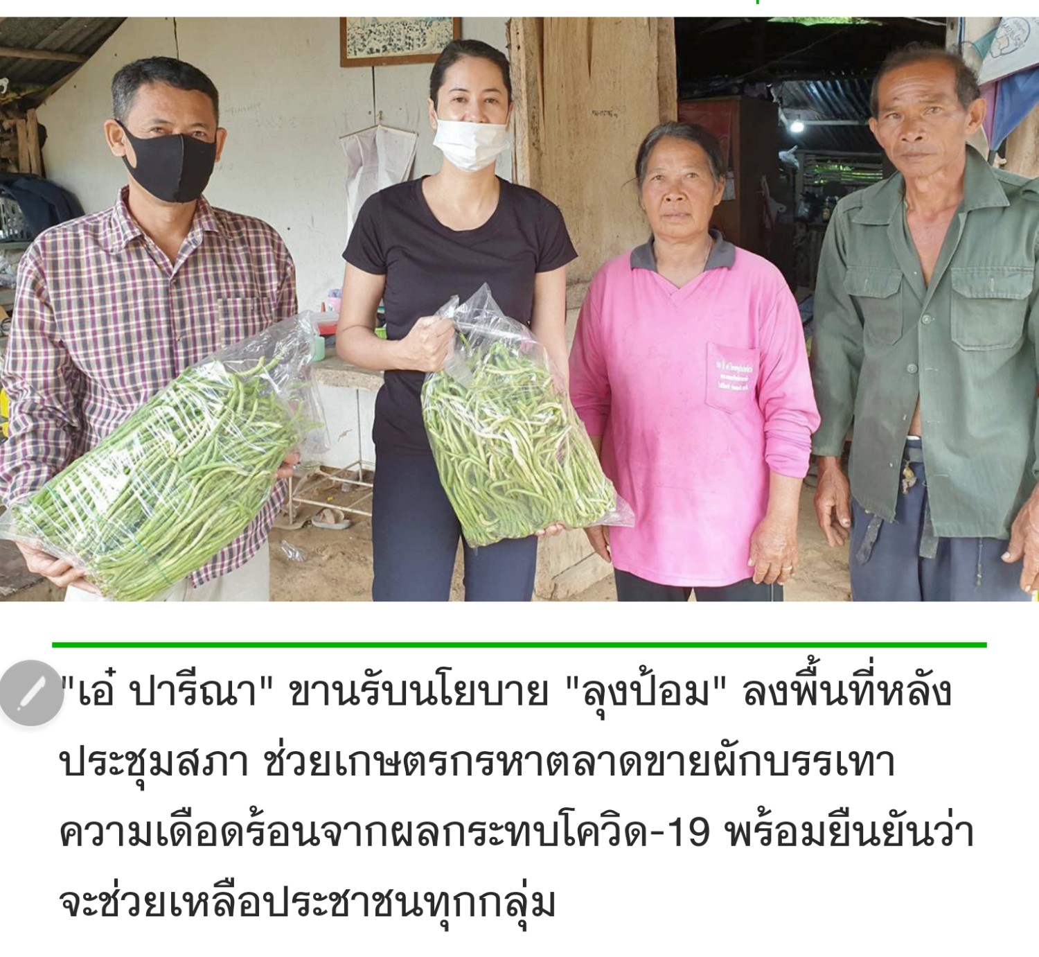 "เอ๋ ปารีณา" ขานรับนโยบาย "ลุงป้อม" ลงพื้นที่หลังประชุมสภา ช่วยเกษตรกรหาตลาดขายผักบรรเทาความเดือดร้อนจากผลกระทบโควิด-19 พร้อมยืนยันว่าจะช่วยเหลือประชาชนทุกกลุ่ม