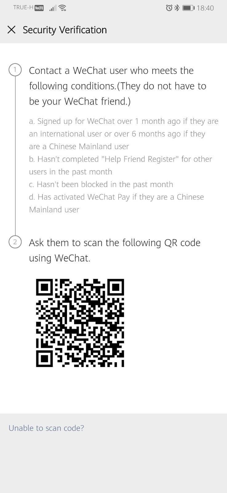 พอกดสมัครเหมือนจะได้แล้วก็ขึ้น qrcode ให้คนที่มี wechat มาสแกนให้ แล้วคือคนใกล้ๆตัวไม่มีใช้กันเลย เพื่อนคนจีนก็ไม่มี ยังงี้เราควรทำยังไงดีครับ