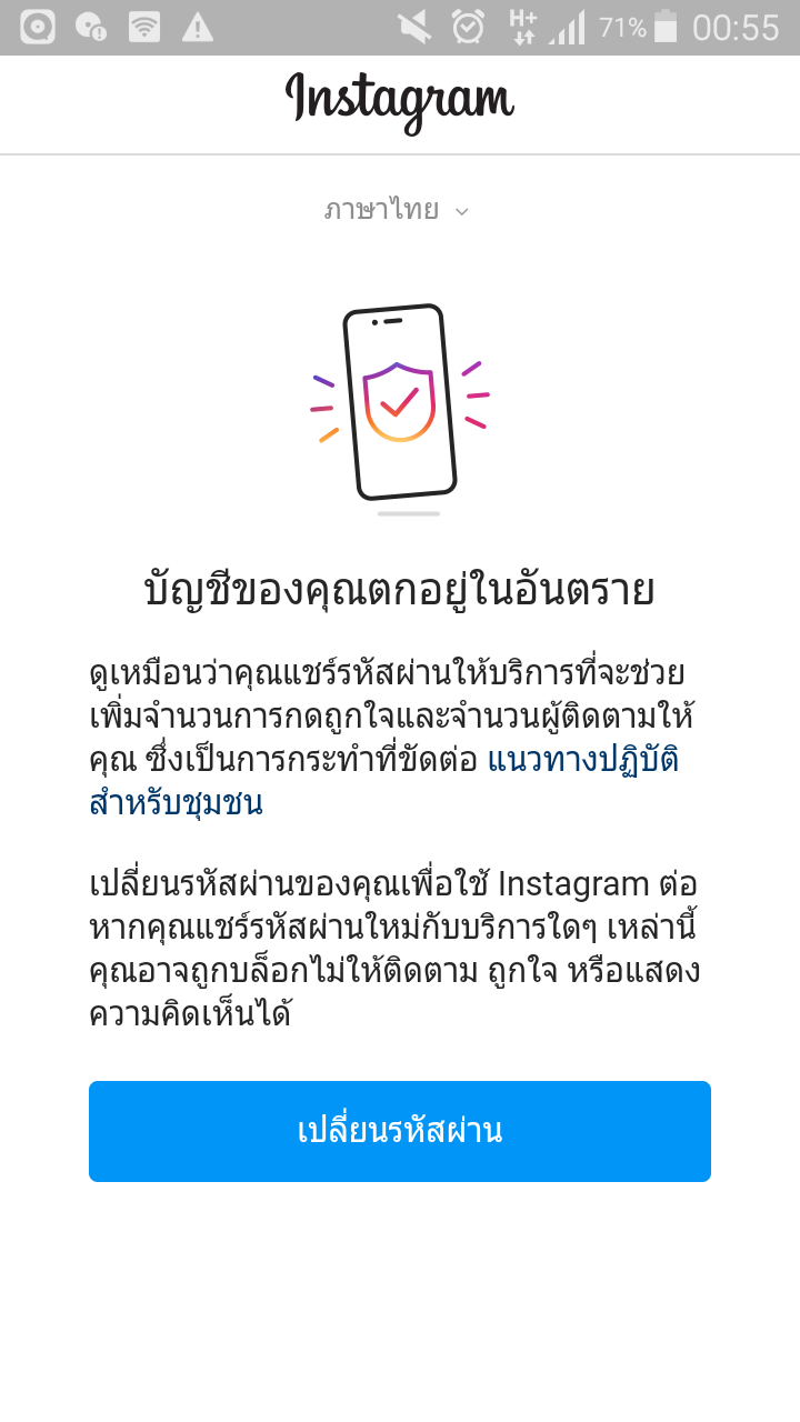 ไอจีขึ้นว่าบัญชีของคุณตกอยู่ในอันตราย?