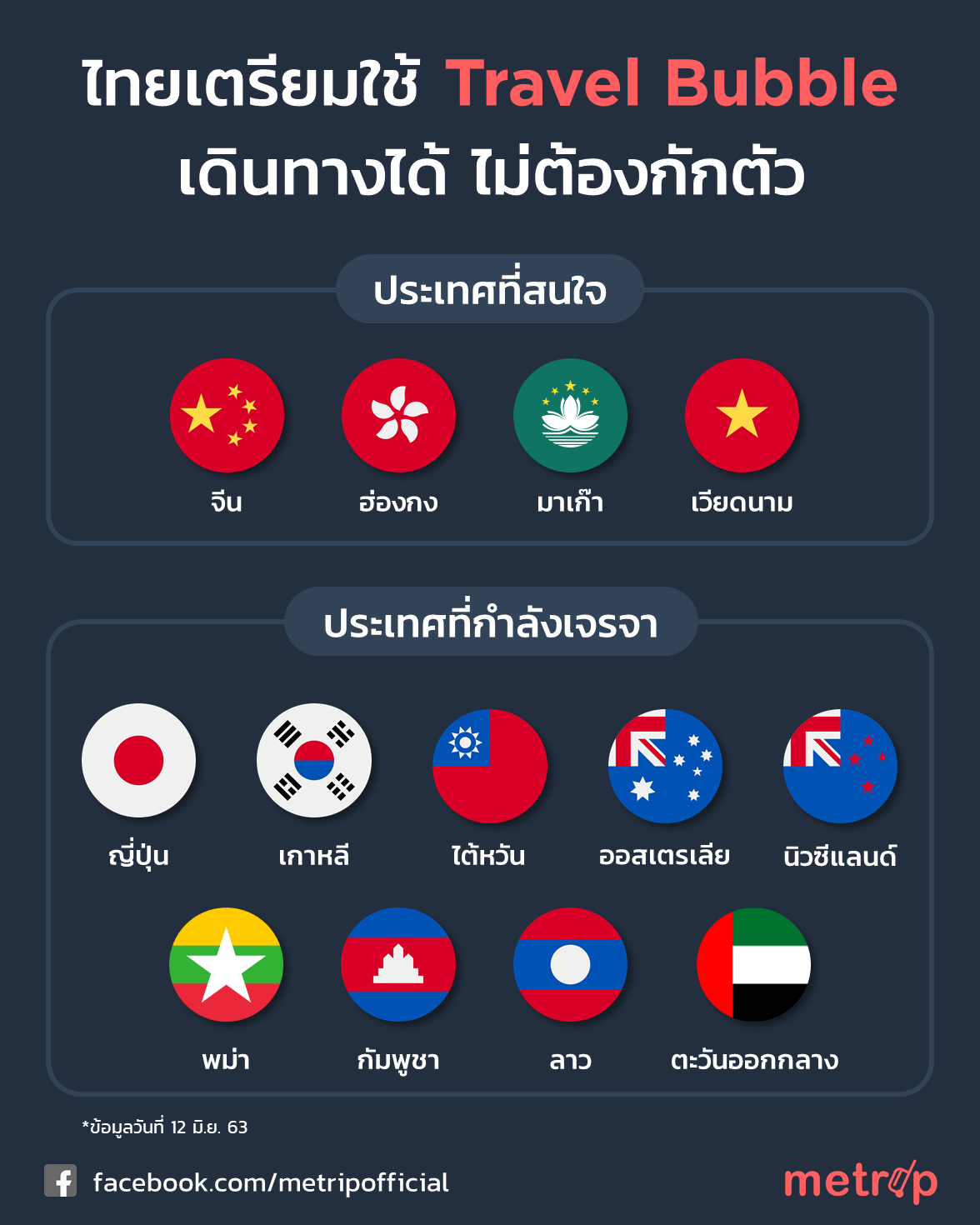 ใครที่คิดถึงการไปเที่ยวต่างประเทศ ถ้าการเจรจาเป็นไปได้ด้วยดี รายชื่อด้านบนก็คงเป็นประเทศแรกๆที่เราสามารถกลับไปเที่ยวกันได้