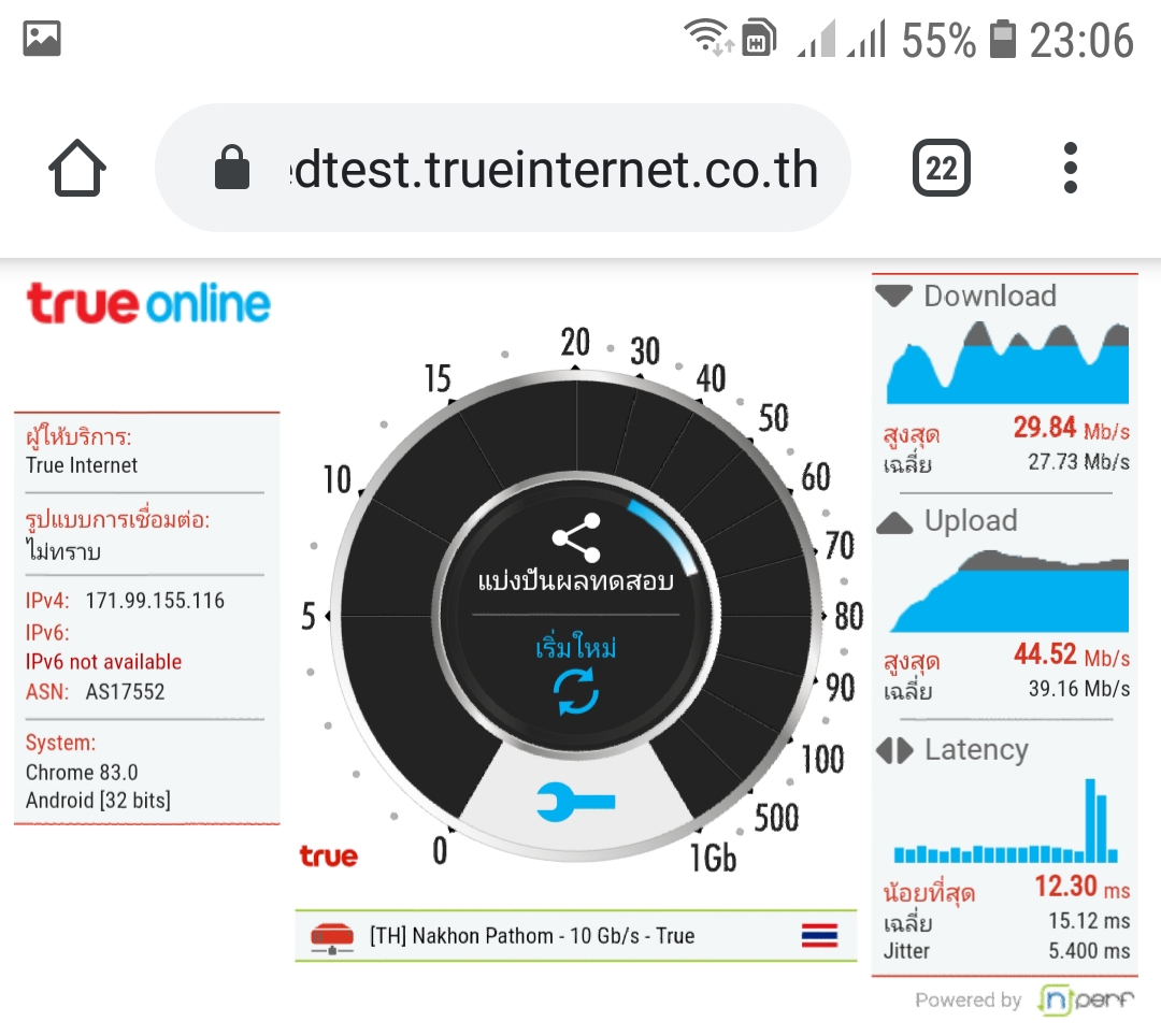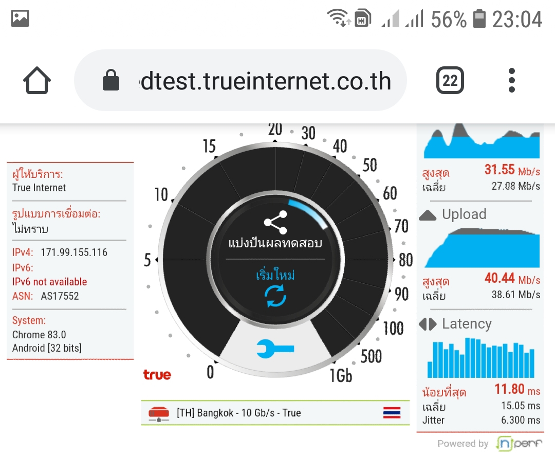 ข้อความจากระบบทรูเด้งขึ้นมา 300/300 เปิด/ปิดเครื่องใหม่ก็แล้ว (เปลี่ยนเราท์เตอร์รุ่นใหม่ก็แล้ว 6 เสา) มาดูผลที่ได้กัน เทสข้างเราท์เตอร์ระยะห่าง 1 ฟุต