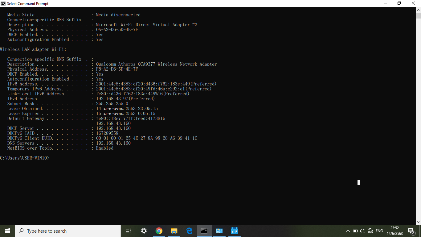ใช้อินเทอร์เน็ตของหอพักค่ะ ต่อสายแลน อาการคือ สามารถต่ออินเทอร์เน็ตได้ แต่เข้าเว็บไซต์อะไรไม่ได้เลยค่ะ ที่รู้ว่าใช้งานได้เพราะ โปรแกรมปล่อย wifi ที่โน็ตบุ๊คปล่อยออกมา โทรศัพท์สามารถเล่นอินเทอร์เน็ตได้
