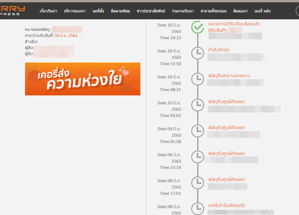 แล้วจากนั้นก็ไปส่งพัสดุ รอจนถึงมือผู้รับ วันที่ 10 มิ.ย. 63