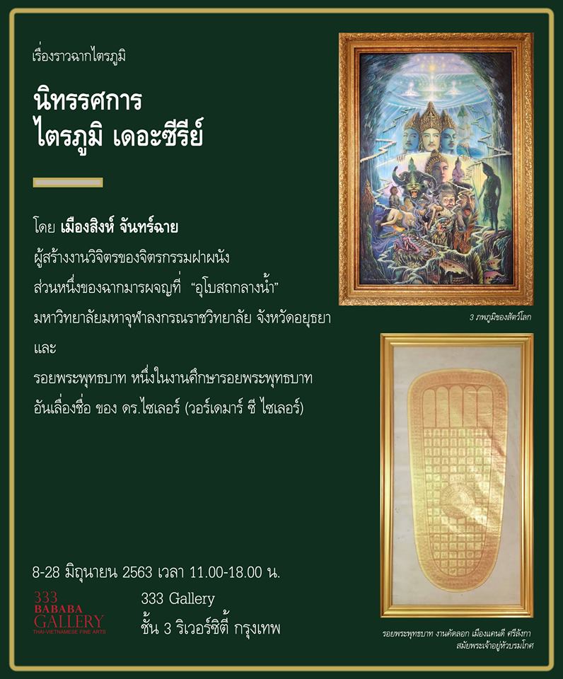 สำหรับท่านใดที่สนใจอยากชมภาพของจริงที่จัดแสดงอยู่ในงานนิทรรสการศิลปะ "ไตรภูมิ เดอะซีรีย์" โดย เมืองสิงห์ จันทร์ฉาย ท่านสามารถไปเข้าชมได้ฟรี ที่ 333 Gallery ชั้น 3 ศูนย์การค้าริเวอร์ซิตี้ กรุงเทพ (สี่พระยา) เข้าชมฟรีทุกวันในเวลา 11.00 - 18.00 น. ตั้งแต่วันที่ 8 - 28 มิถุนายน 2563 นี้