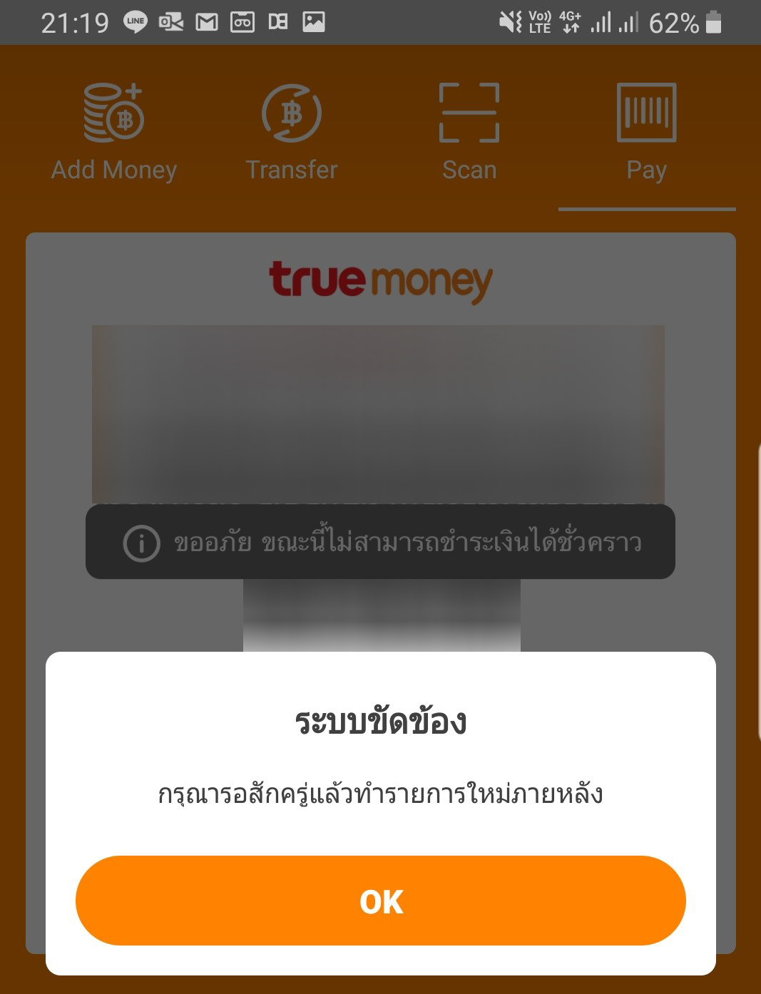 TrueMoney เติมเงินเข้า Wallet ได้ แต่พอจะใช้จ่ายเงินดันใช้ไม่ได้