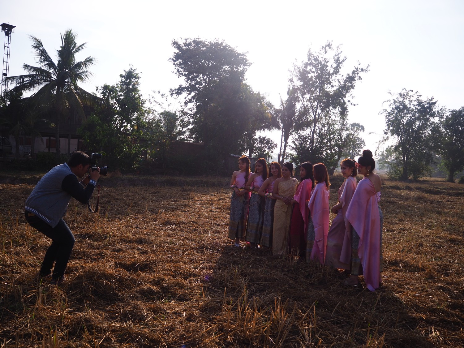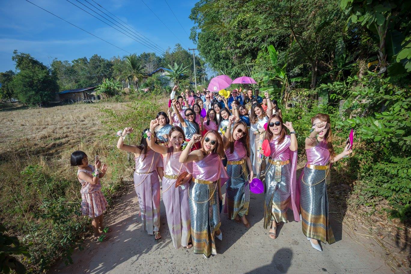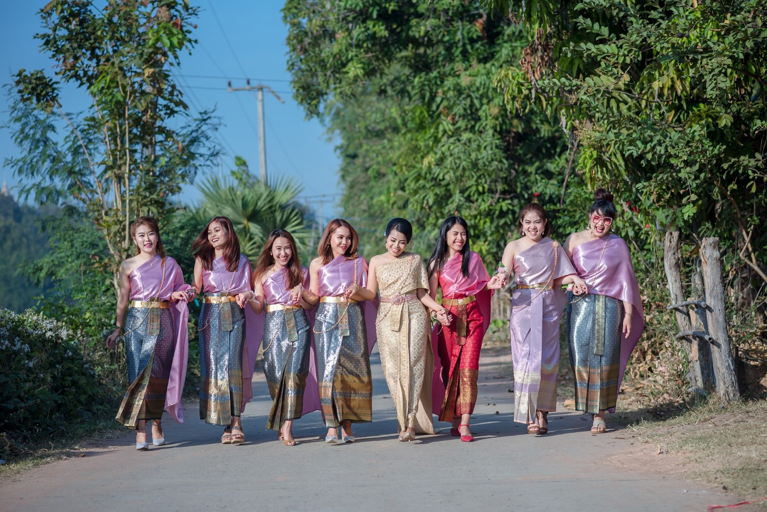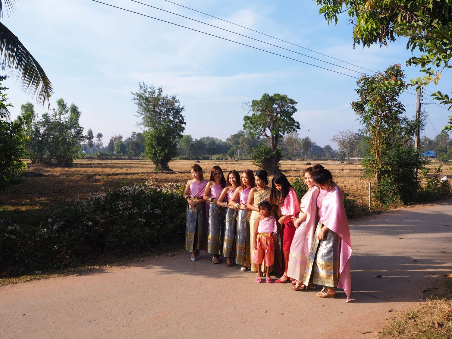 ถ่ายรูปเพื่อนเจ้าสาว โลเคชั่นบ้านนอก ถนน ต้นไม้ และพื้นที่ข้างหลังนั้น ส้มโอว่ามันเก๋มากเลย ได้บรรยากาศดีนะ