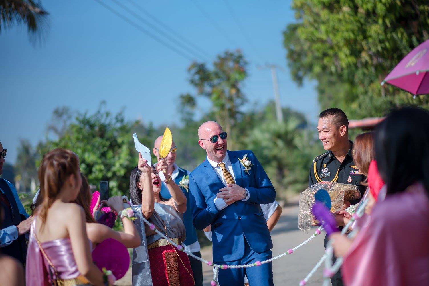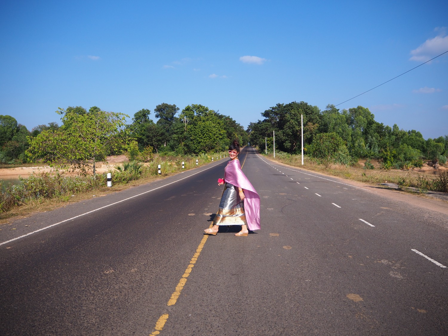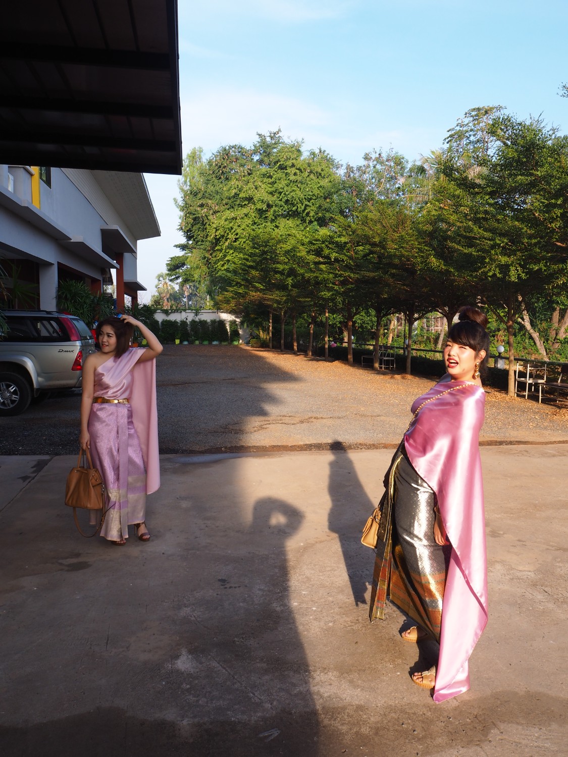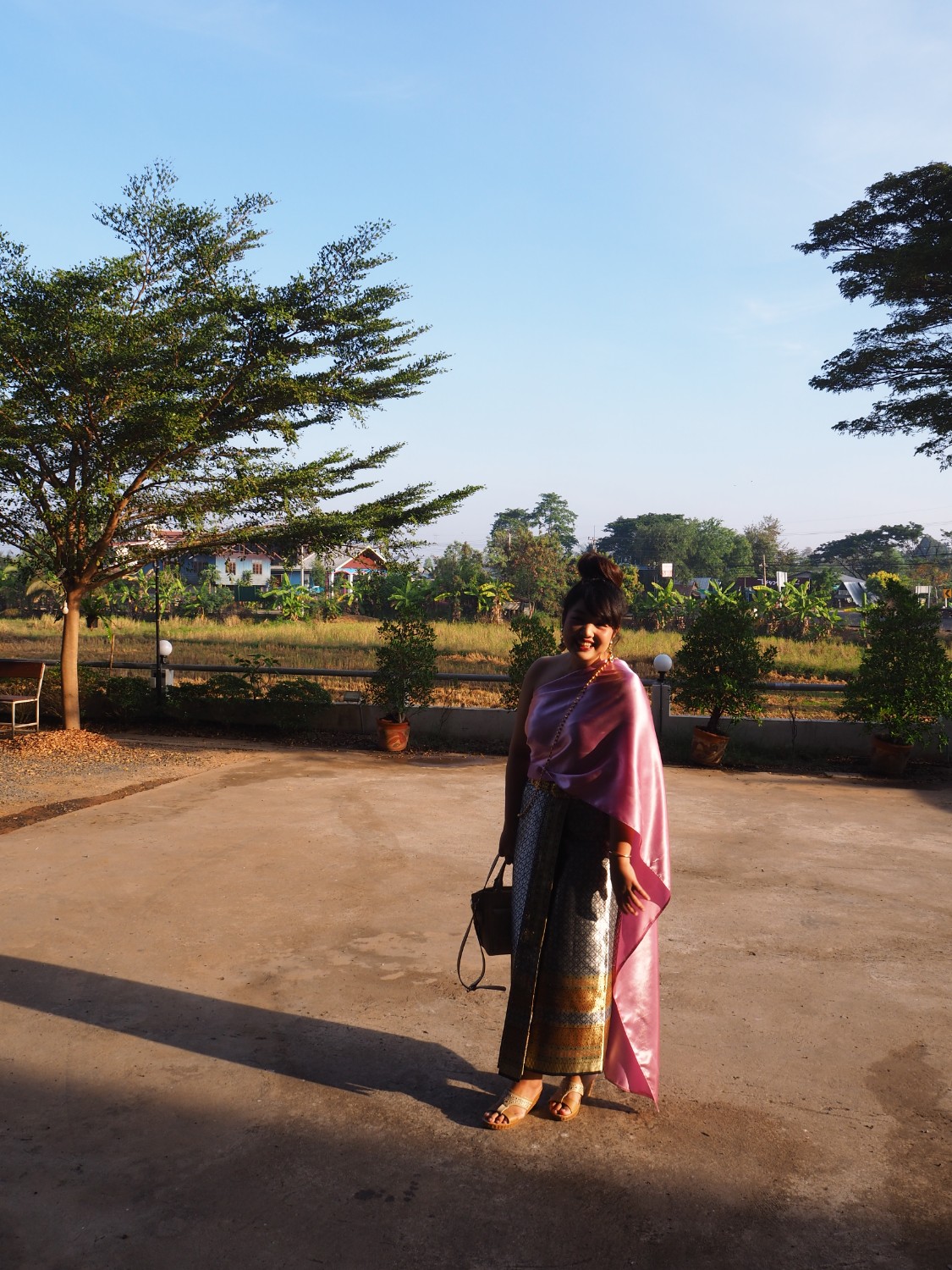 ถ่ายรูปเพื่อนเจ้าสาว โลเคชั่นบ้านนอก ถนน ต้นไม้ และพื้นที่ข้างหลังนั้น ส้มโอว่ามันเก๋มากเลย ได้บรรยากาศดีนะ