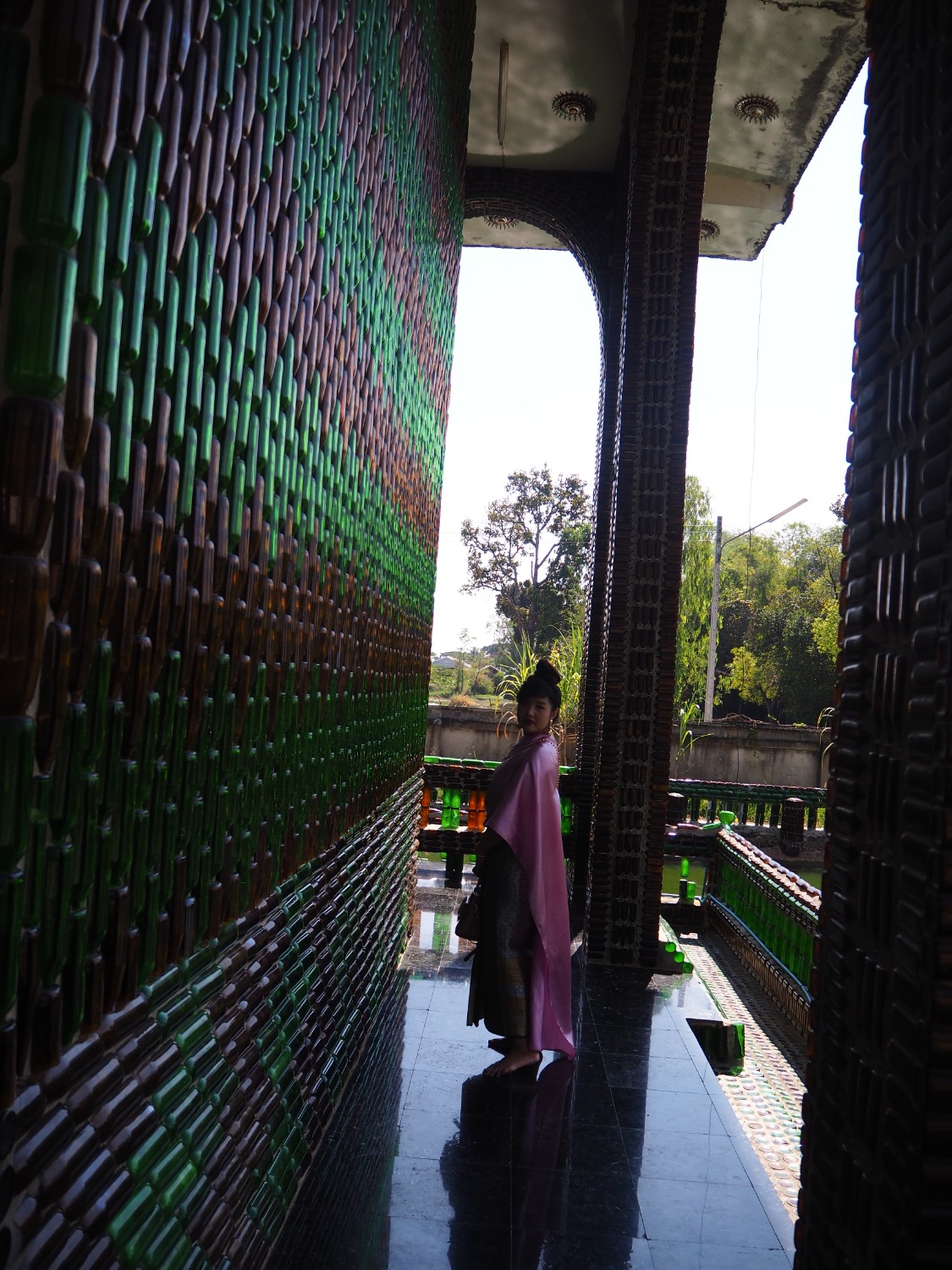 ไปแวะวัดล้านขวด เป็นโบสถ์ที่สร้างสรรค์จากการนำขวดแก้วมาก่อเรียงขึ้นเป็นโบสถ์