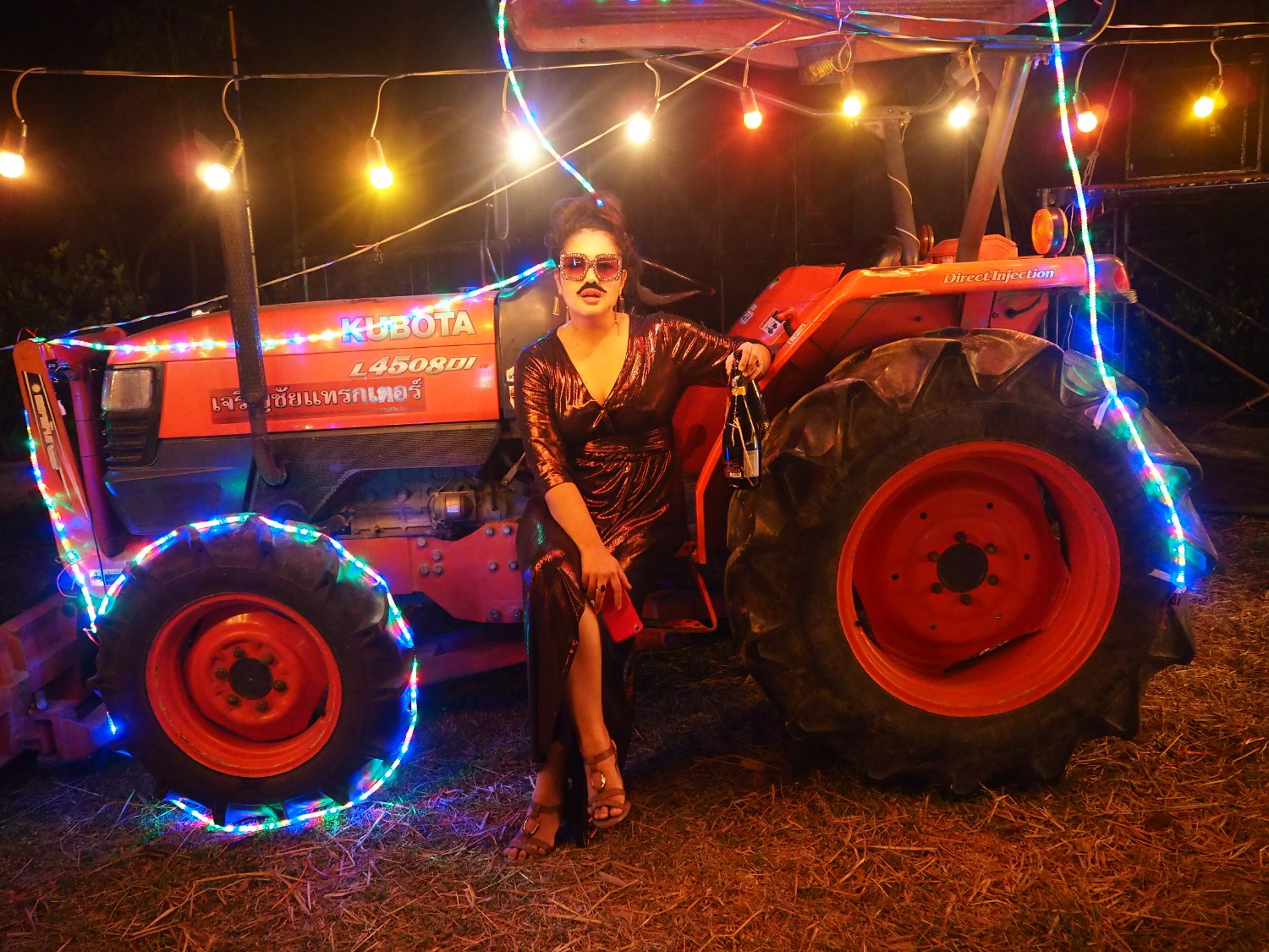 ขอทำคูลถ่ายกะพี่รถไถนิดนึง (ส้มโอซื้อหนวดมาติดเล่นกันค่ะ)