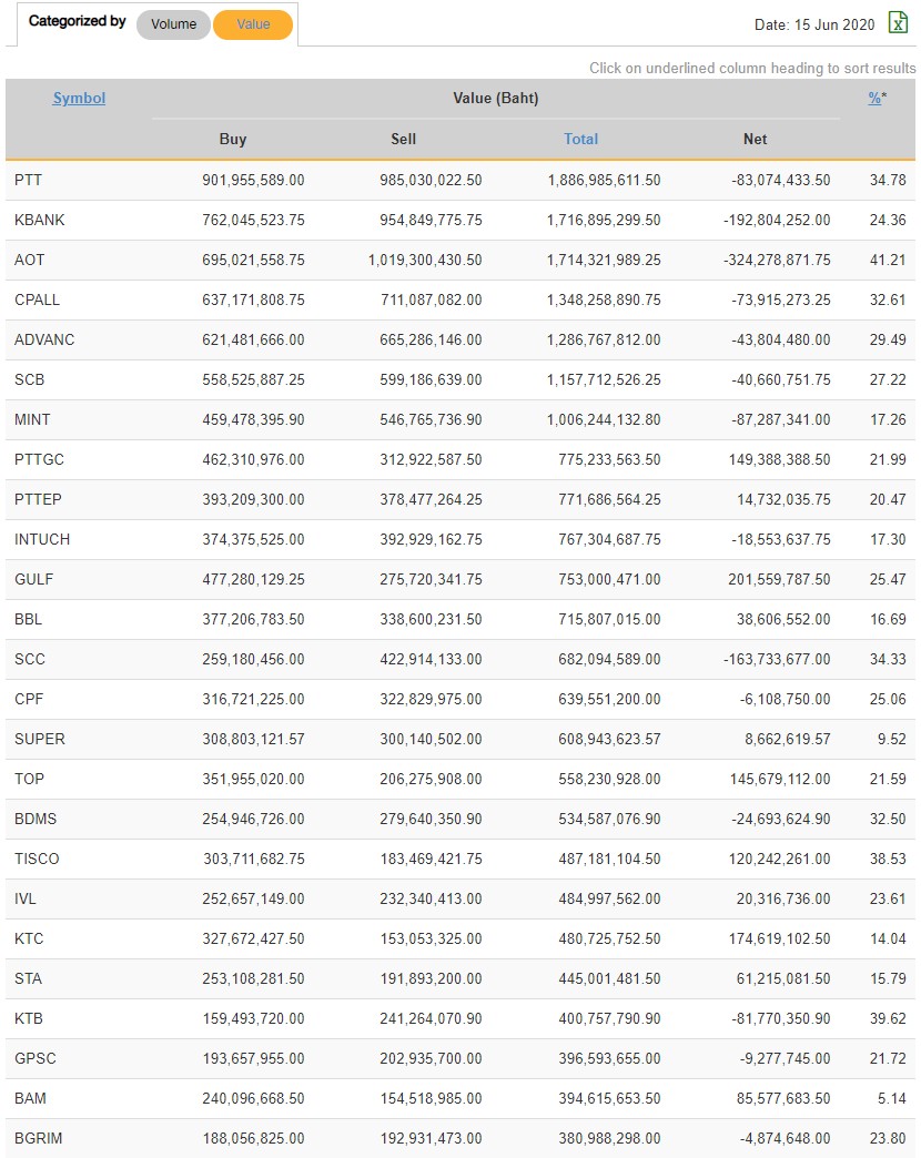 นักลงทุนต่างชาติ NVDR ซื้อ-ขาย มูลค่าสูงสุด 25 อันดับ 15/06/63
