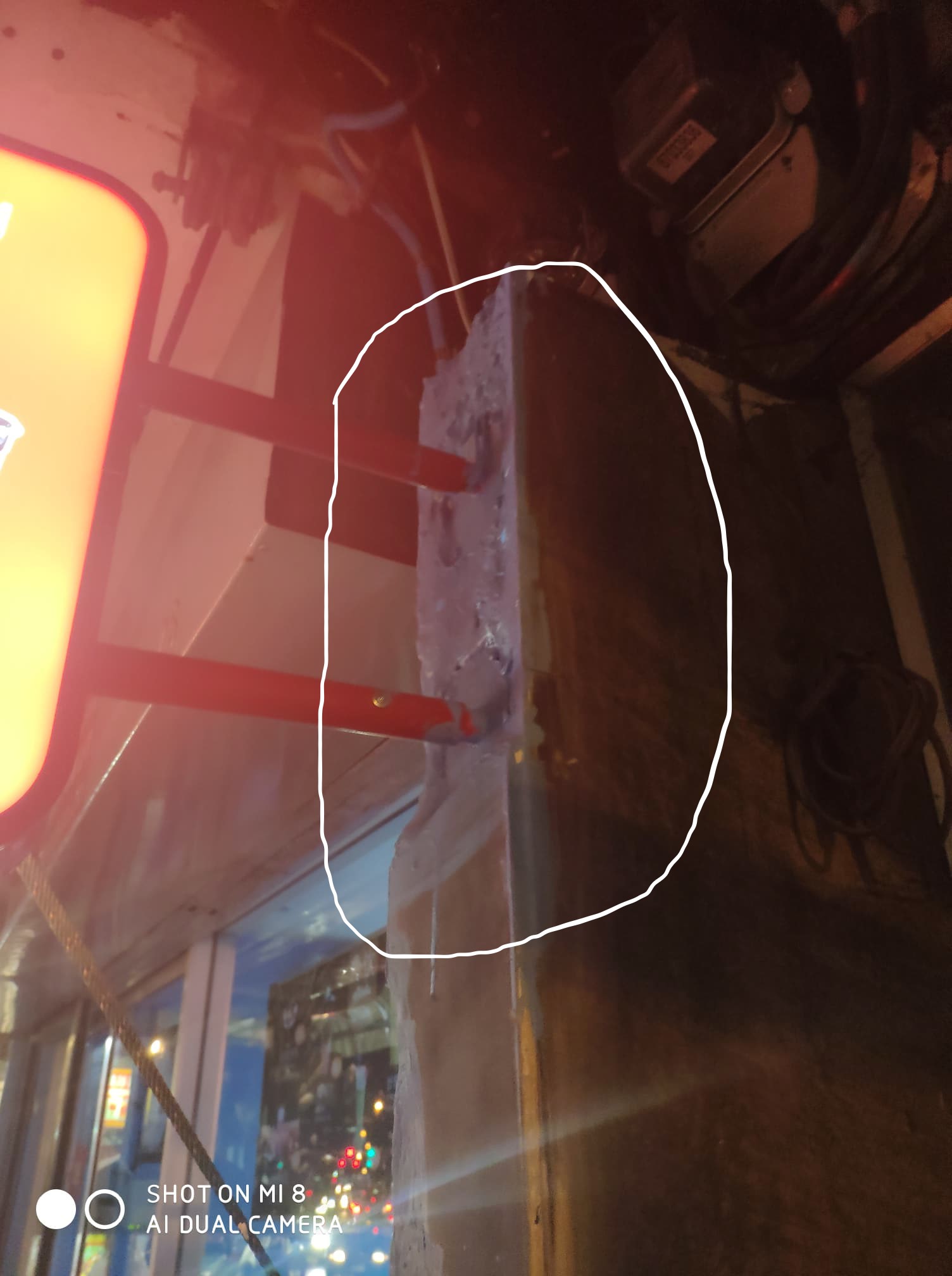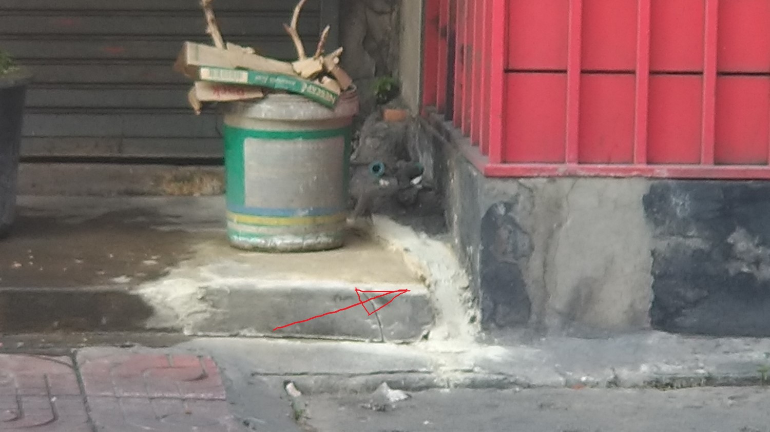 คือ ล่าสุด เค้ามารุกลํ้าพื้นด้วยการมาทุบกระเบื้องผนังสีดำ ยึดโบลท์ ติดป้าย ไม่ขออนุญาต แถมยังทาสีฟ้าทับแผลปูนอีก