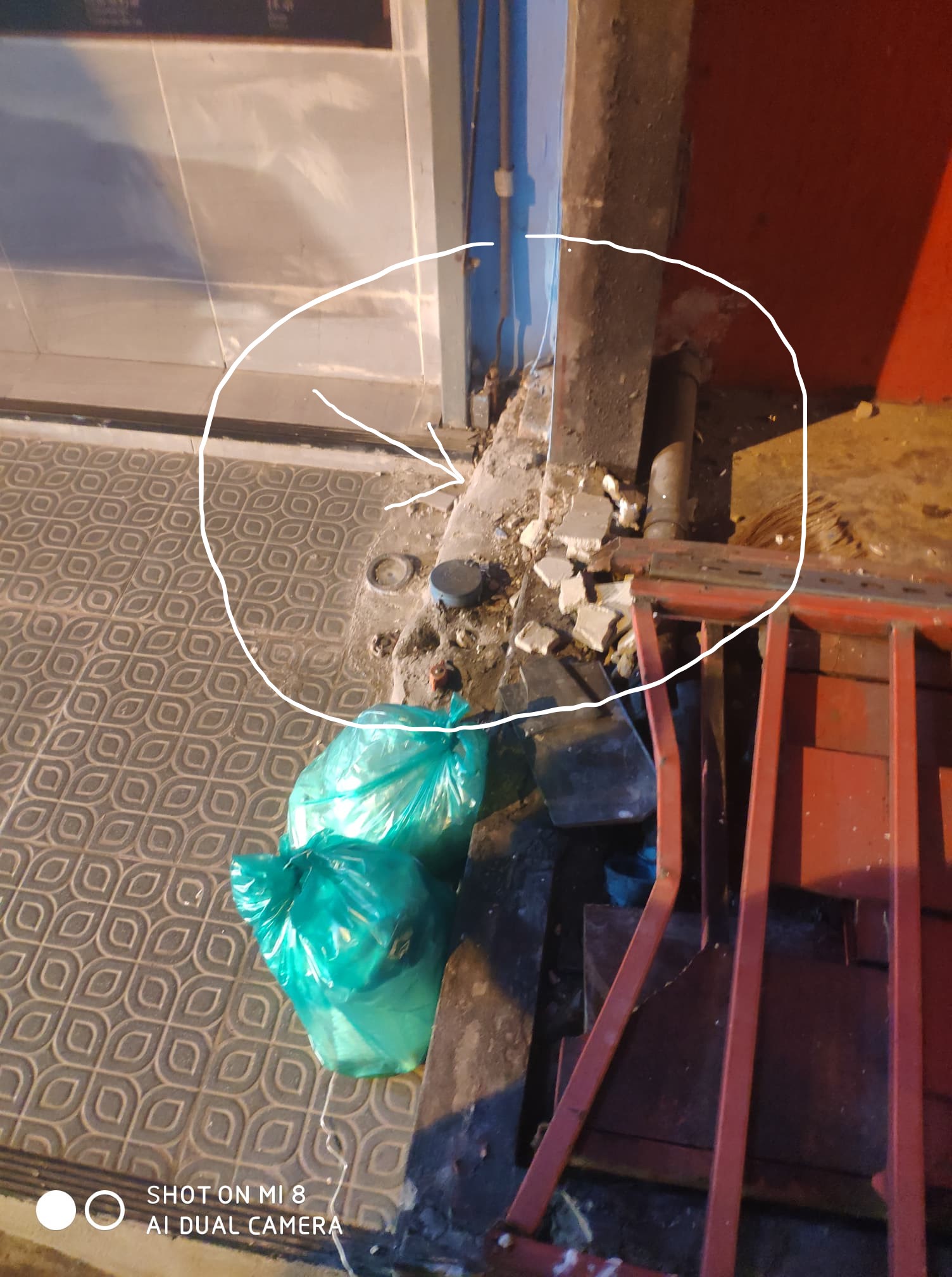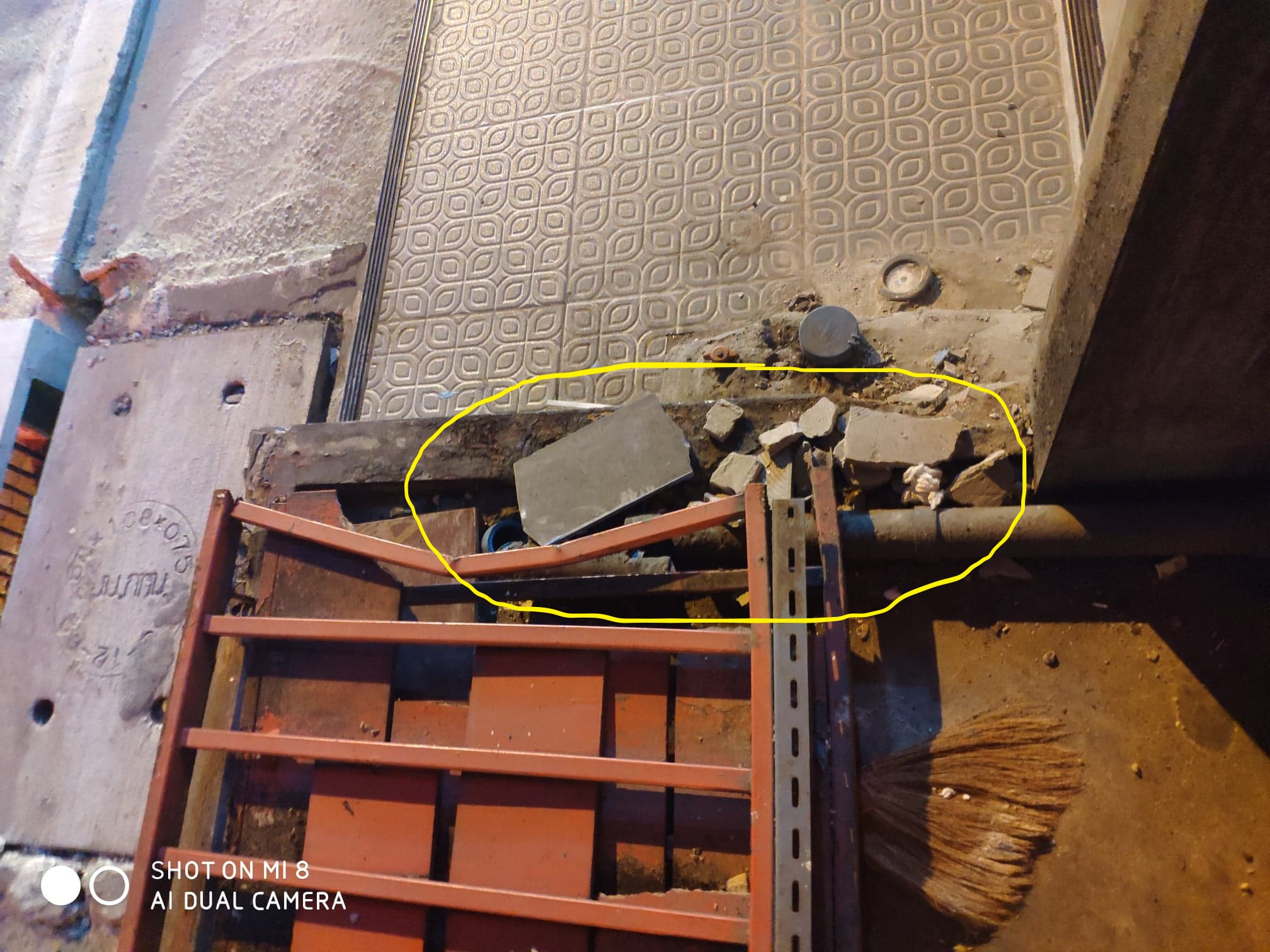 แถมยังมีร่องรอยเศษกระเบื้อง ที่ถูกทุบอยู่ที่พื้นอีก