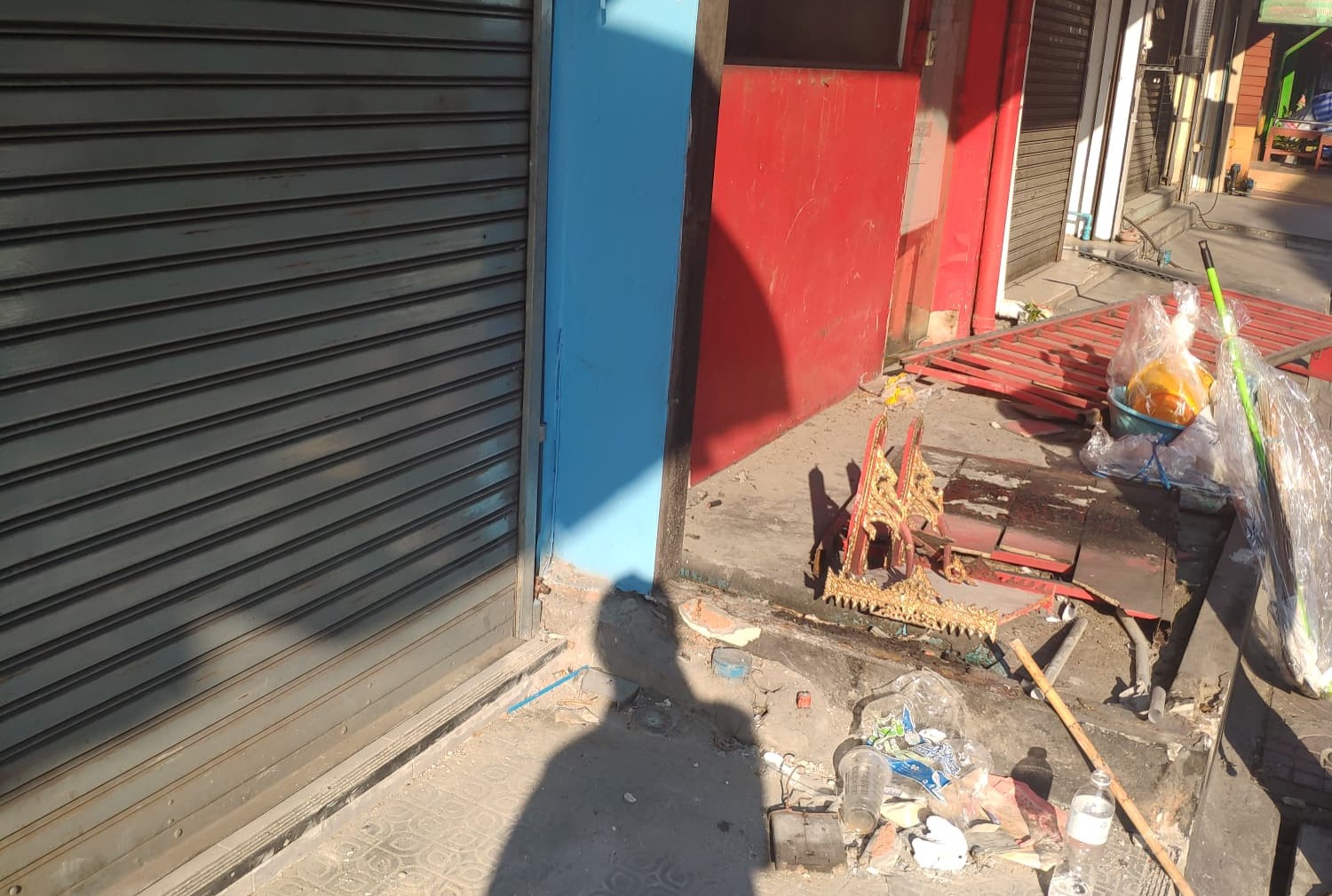 คือเหตุการณ์มันเริ่มจากคนเช่าตกแต่งอาคารพาณิยช์ คือเค้าตกแต่งเปลี่ยนสภาพให้มีเสากำแพงดำยื่นออกมา จนเมื่อคนเช่าของเราออกไป ข้างบ้านมีคนเช่ามาเช่าบ้าง ตกแต่งร้านเสร็จติดเคอร์ฟิวพอดี กว่าเปิดร้านได้ก็ยื้อไปประมาณ เดือน สองเดือน
