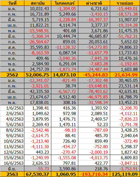 Sinthorn Summary 16/6/2563 : ต่างชาติซื้อสุทธิ 422.77 ลบ.