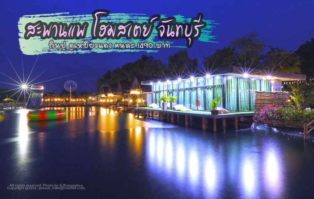 ทริปนี้เกิดขึ้นหลังโควิดซาและสถานที่ท่องเที่ยวต่างๆ เริ่มเปิดให้บริการตามปกติ ลุงม่วงเลยถือโอกาสพาคุณแม่เที่ยว เพราะกักตัวอยู่แต่บ้าน ไม่ได้ไปไหนร่วม 3 เดือนเต็ม เราเลือกที่ “สะพานแพ โฮมสเตย์ จันทบุรี” เพราะที่นี่ราคาถูกกว่าที่อื่นๆ โดยจะคิดราคาที่หัวละ 1490 บาท รวมอาหารบุฟเฟ่ 2 มื้อ ล่องแพเปียก และยังแถมกุ้งมังกรตัวใหญ่ให้หนึ่งจานถ้าไปอย่างต่ำ 5 ท่าน รวมไปถึงการมีมาตรการดูแลและป้องกันไวรัสโควิด มีเจลแอลกอฮอล์ล้างมือตามจุดต่างๆ อย่างเพียบพร้อม ทำให้มั่นใจในเรื่องความปลอดภัยเป็นอย่างยิ่ง