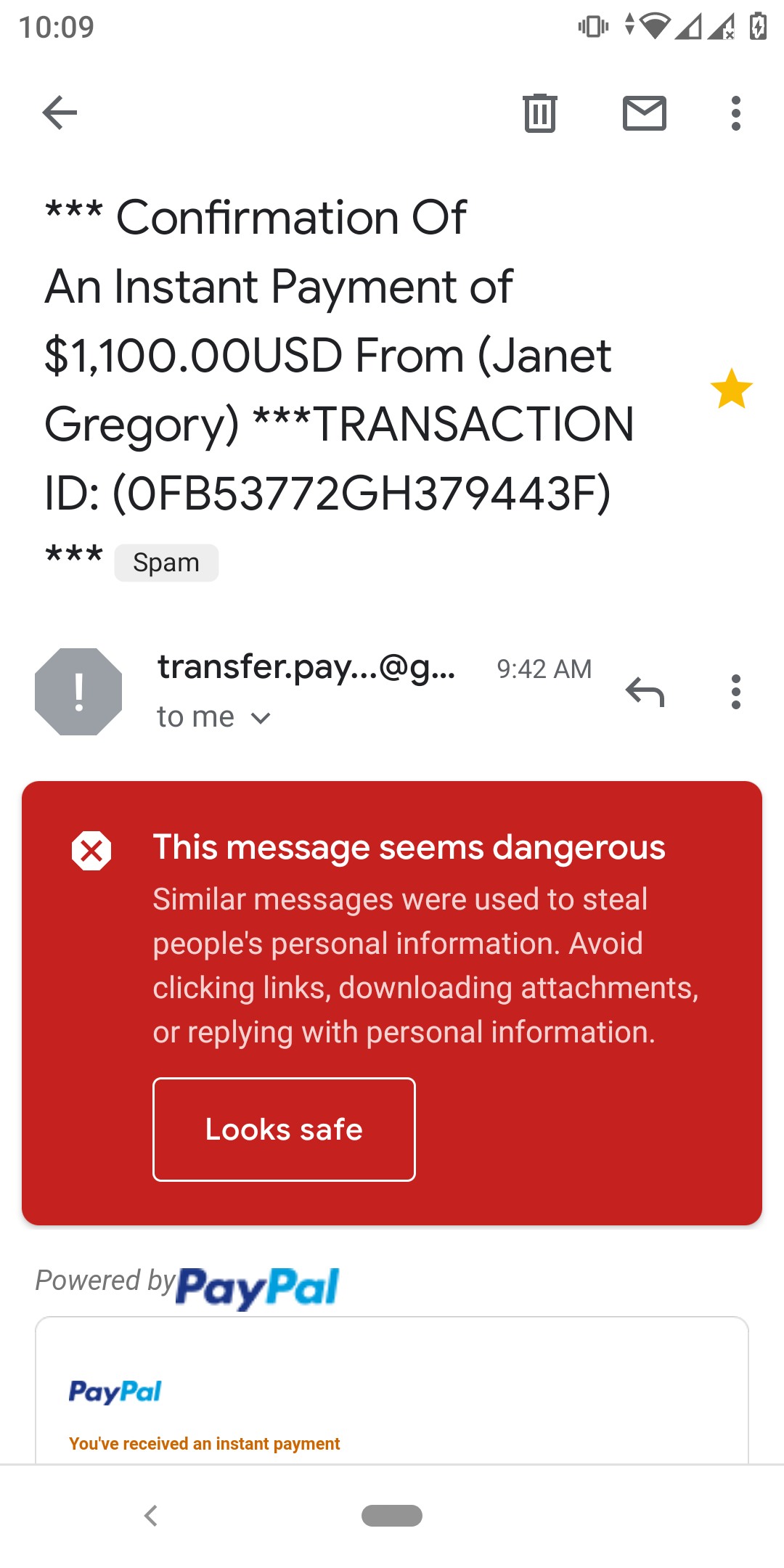 คือเราซื้อขายแมวกับต่างชาติคนนี้ แล้วเขาบอกว่าโอนเงินมา แต่เงินยังไม่เข้าใน PayPal เลยค่ะ