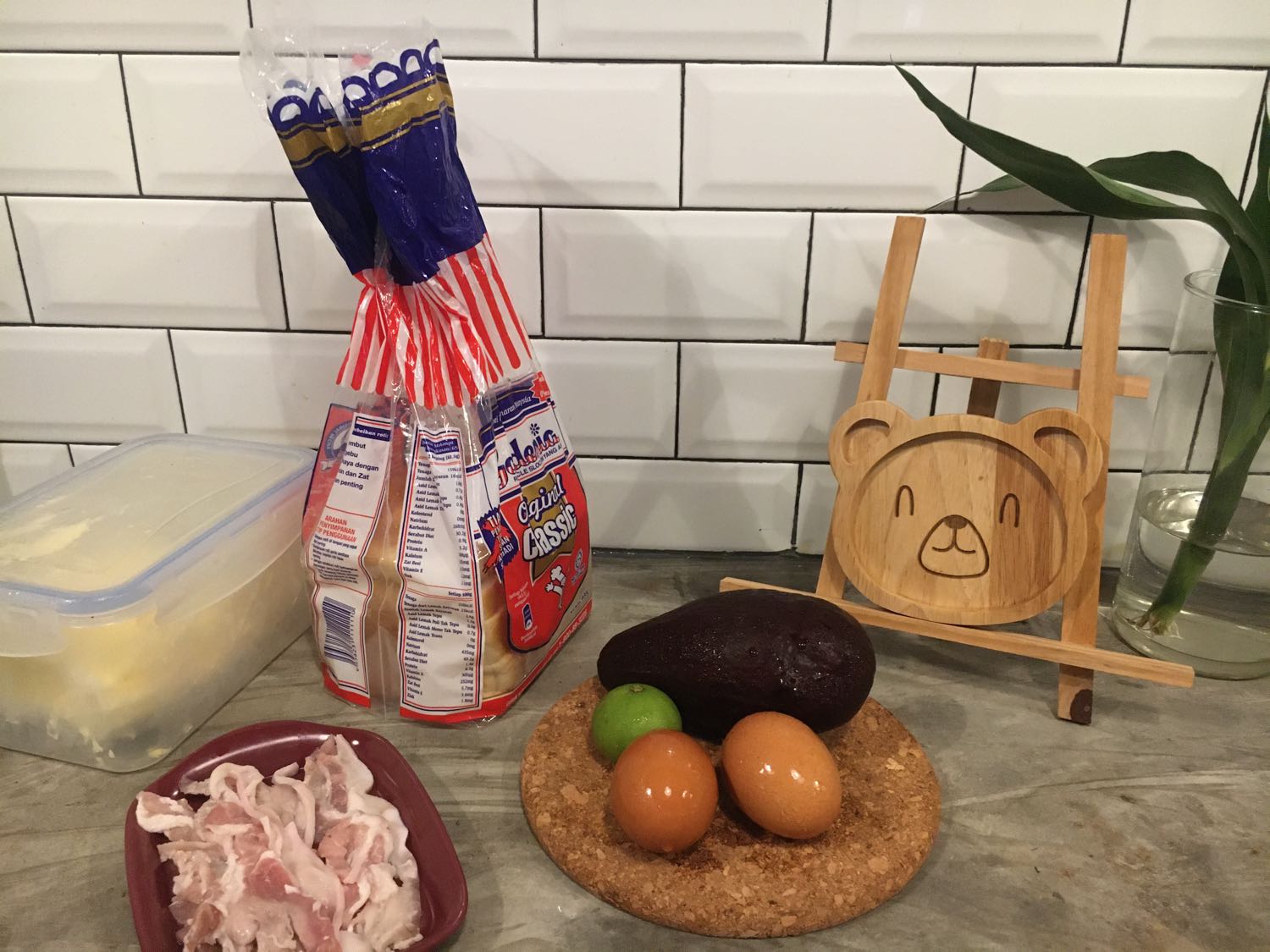 • เบคอน, ขนมปังปิ้ง ตามชอบค่ะ