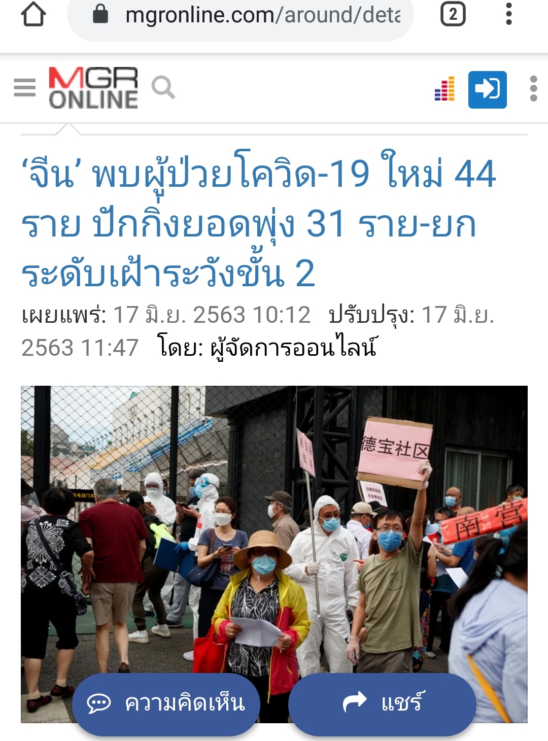 ...... ‘จีน’ พบผู้ป่วยโควิด-19 ใหม่ 44 ราย ปักกิ่งยอดพุ่ง 31 ราย-ยกระดับเฝ้าระวังขั้น 2 ห่วงเด็กสั่งปิดร.ร.ทันที....