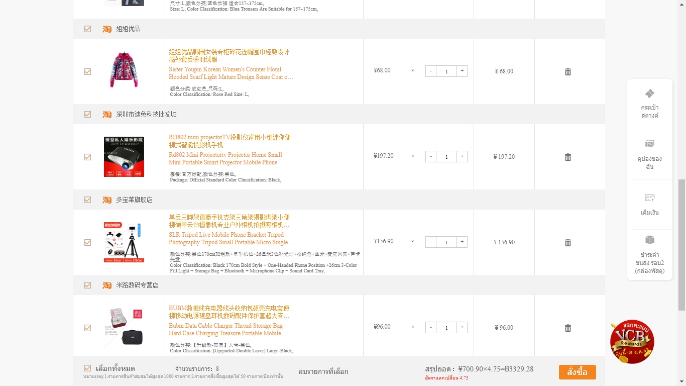สรุปไปๆมาๆช้อปให้แฟนไม่กี่ชิ้น เป็นของที่เค้าอยากได้ นอกนั้นเป็นของเราพวกเสื้อผ้ากระเป๋า ดีไซน์สวยๆราคาไม่แพง ด้วยความที่ไม่เคยใช้บริการสั่งของจากจีนแบบนี้มาก่อน ก็เลยรู้สึกว่าขั้นตอนมันยุ่งยากไปหน่อย แต่ดูในรีวิวทวิตเตอร์คนบอกว่าส่งของไว บริการดี และราคาไม่แพง ก็เลยลองดูก่อน ถ้าเกิดดีอย่างที่เค้าว่ากันก็จะใช้อีกแน่นอน ลองเข้าไปดูกันได้นะ