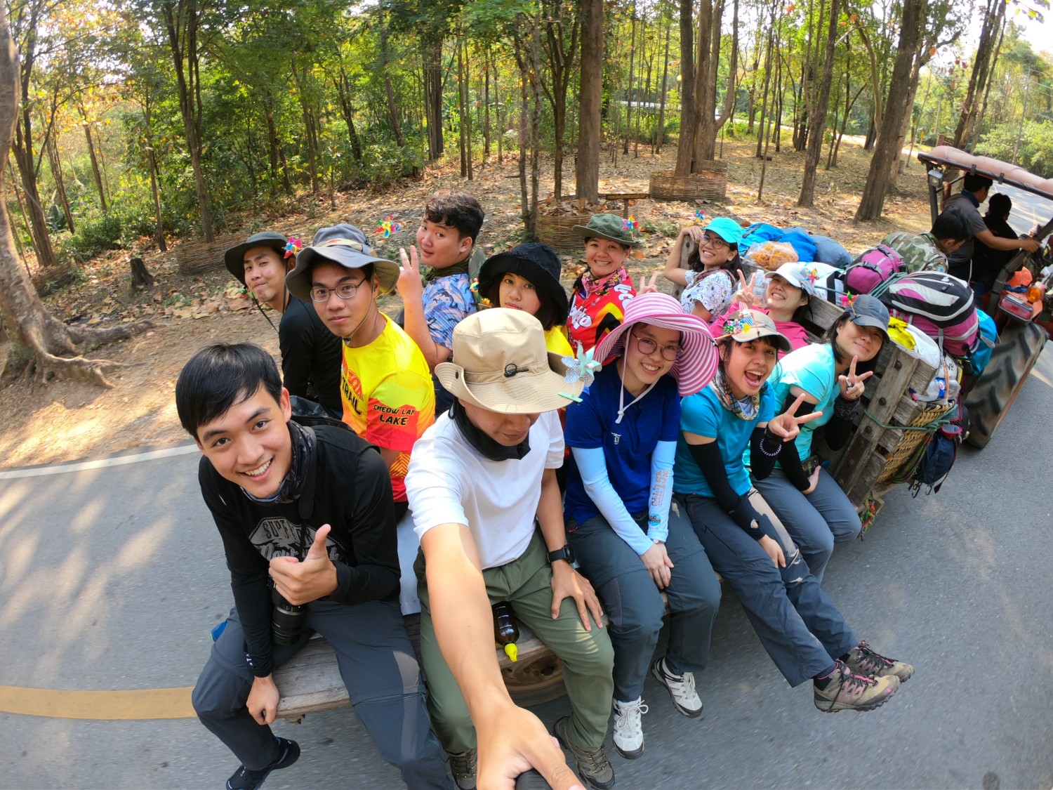 นั่งรถอีแต๊กขนาดใหญ่เข้าไปที่แคมป์แม่กระสาระยะทาง 16 km ที่นั่งก็จะอบอุ่นกันแบบนี้ฮ่าๆ