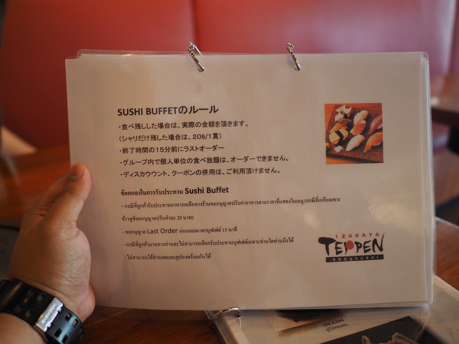 ร้าน izakaya teppen นั้นมีหลายสาขาเหมือนกัน ทั้งทองหล่อ, หลังสวน, เอสพลานาด, และที่นี่ Bambini Villa ในส่วนของบุฟเฟต์ตอนนี้จะจัดเฉพาะที่Bambini Villa เท่านั้น และเฉพาะวันจันทร์ - วันพุธ เวลา 11.00-19.00 น. ร้านปิด 21.00 (Last Order 20.30)