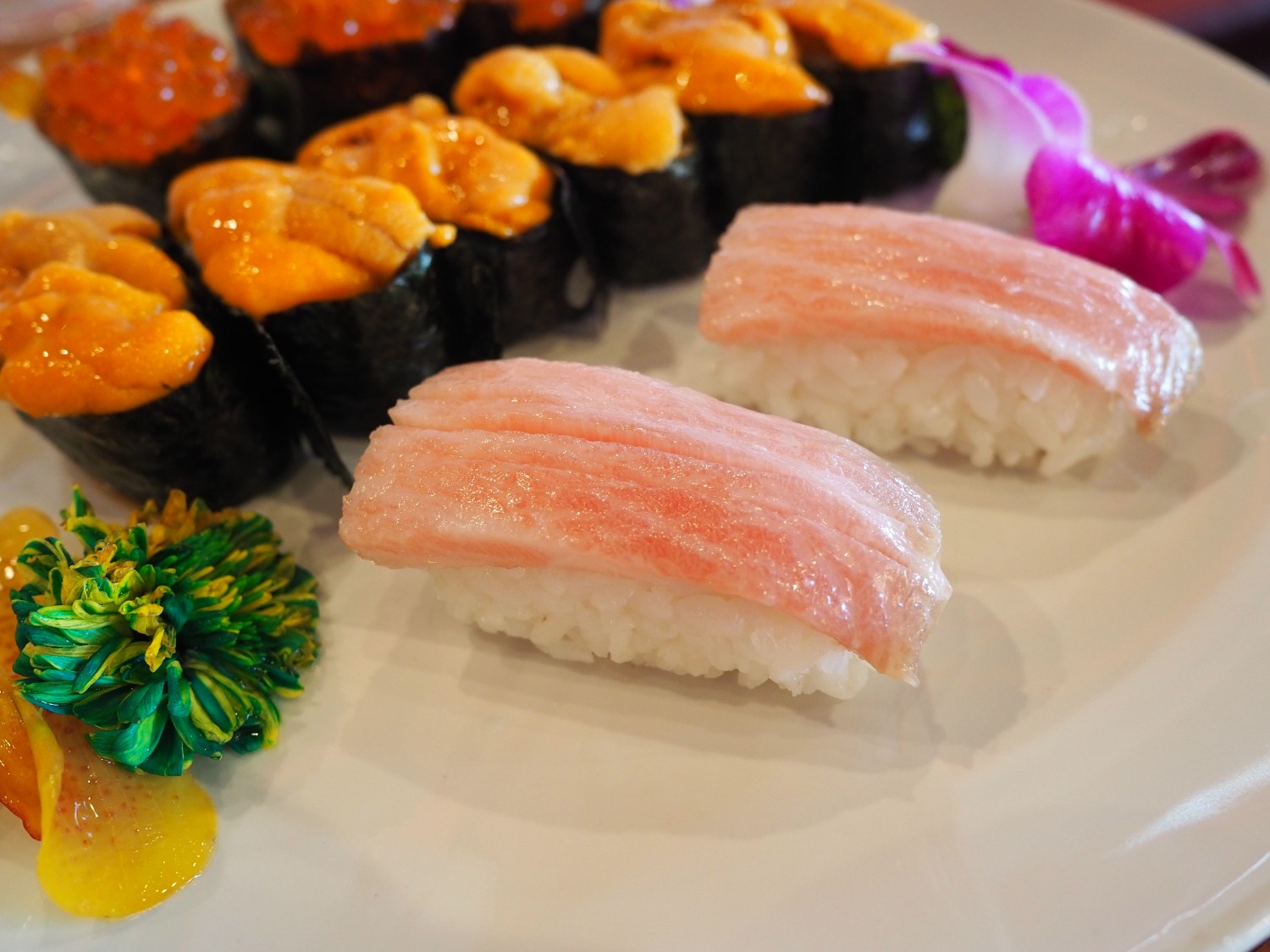 จานต่อมาซูชิชุดแรกไฮไลท์เน้น ๆ อิคุระ อูนิ และโอโทโร่
