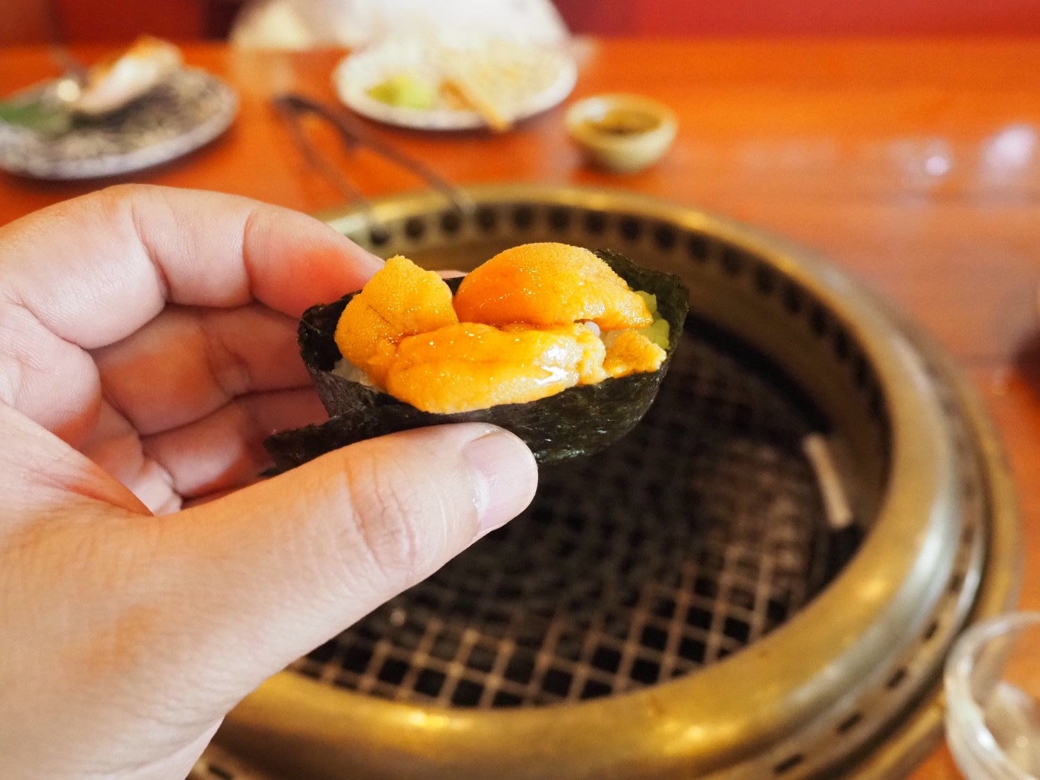 เราเลือกได้ด้วยนะครับว่าจะย่างเองหรือให้พนักงานย่างให้ ผมเลือกย่างเอง เพราะมีหลายเมนูที่อยากย่างเอง ทั้งคานิมิโสะ และวากิวสุกี้ยากี้