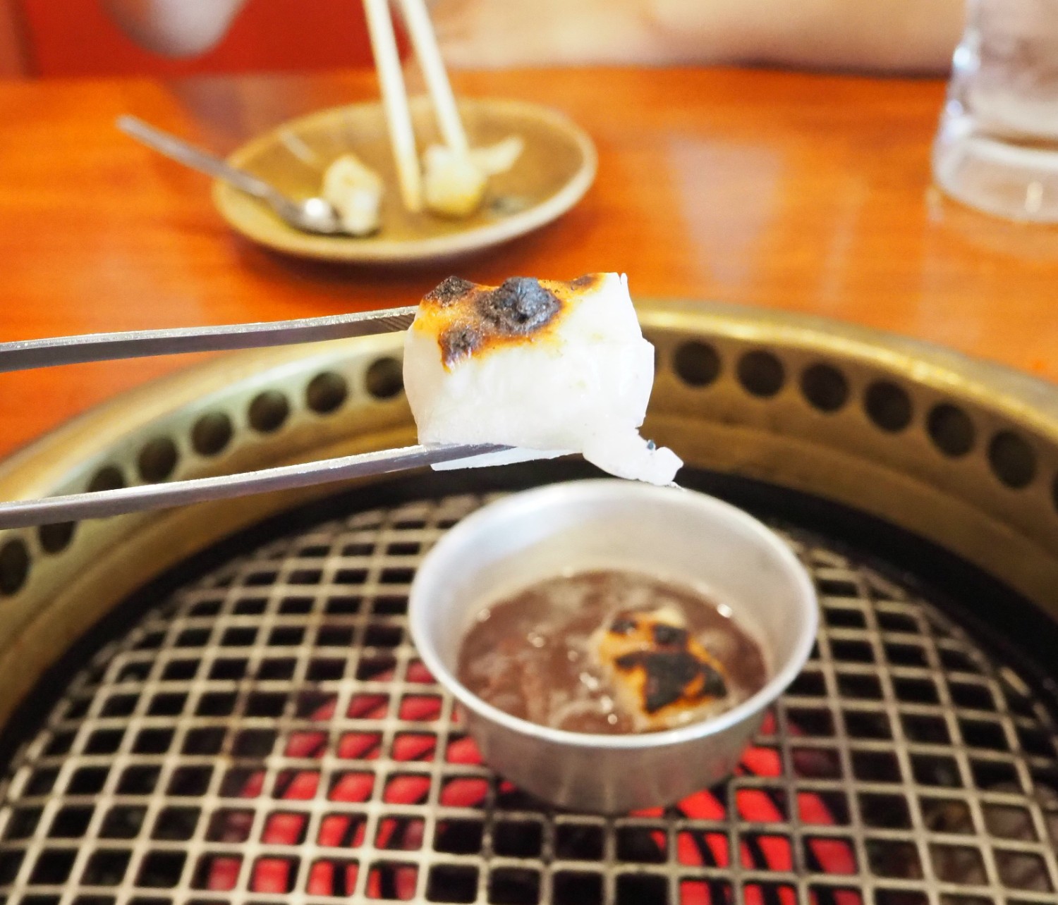 เค้าจะมีน้ำซุปดาชิไว้ให้ใส้เวลาย่างด้วยครับเพิ่มความหอมและไม่ปห้งเกินไป