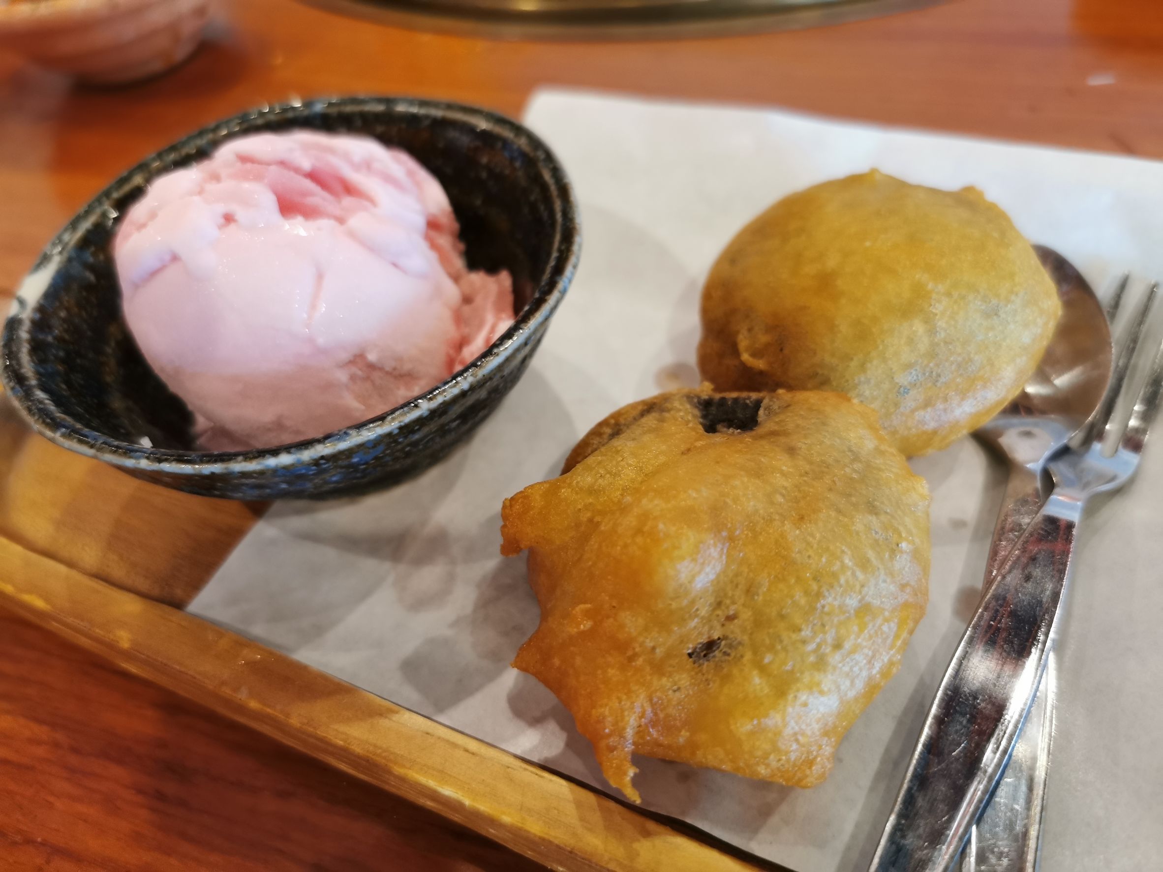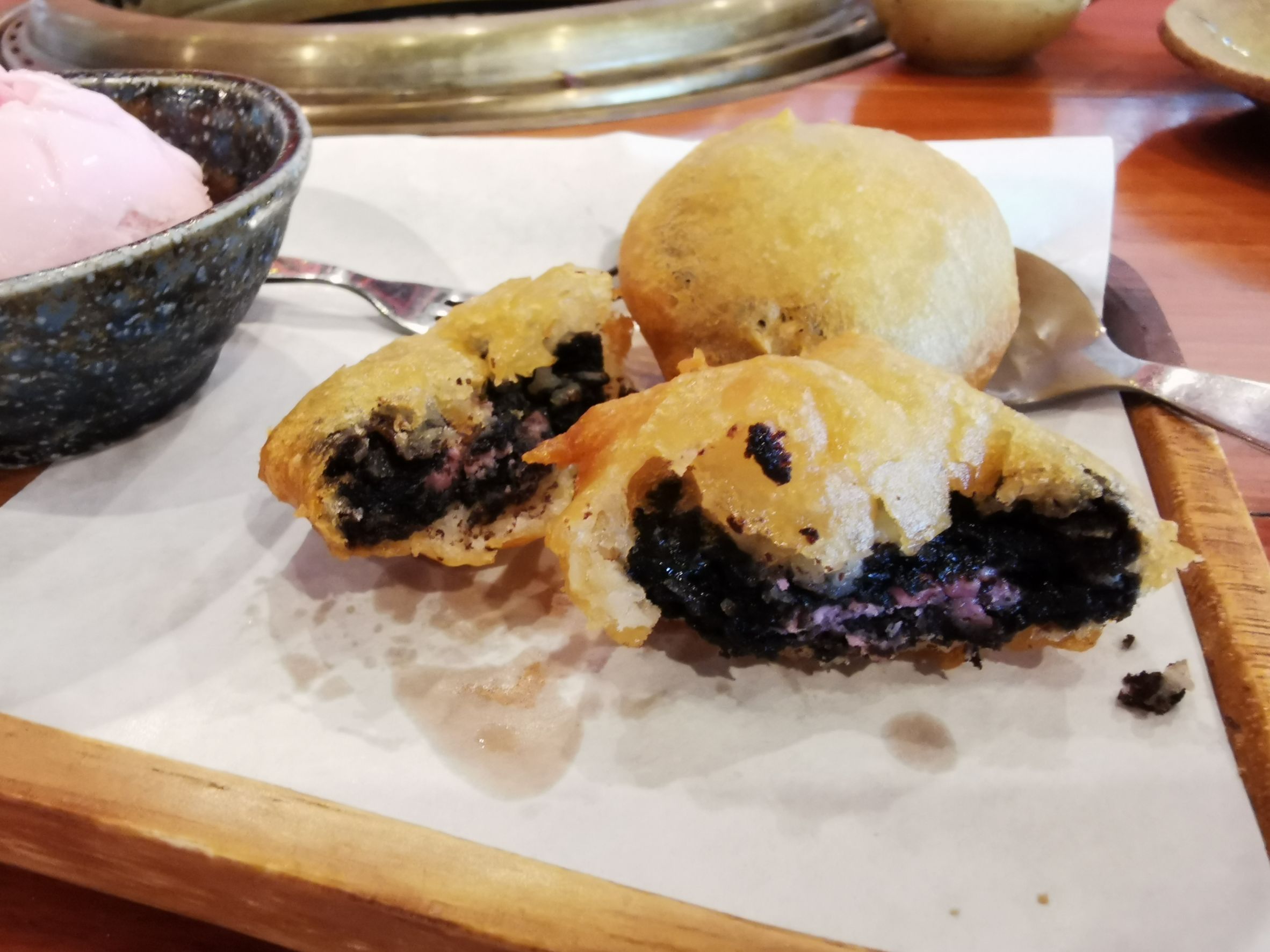 อันนี้ปลื้มที่สุด โอริโอ้ทอดกับไอศครีม โอริโอ้เจอความร้อนแล้วทำให้แป้งนุ่มขึ้น ชุปแป้งมากรอบ ๆ ร้อน ๆ กินกับไอศครีมดีงามมาก ทึ่งในความครีเอท