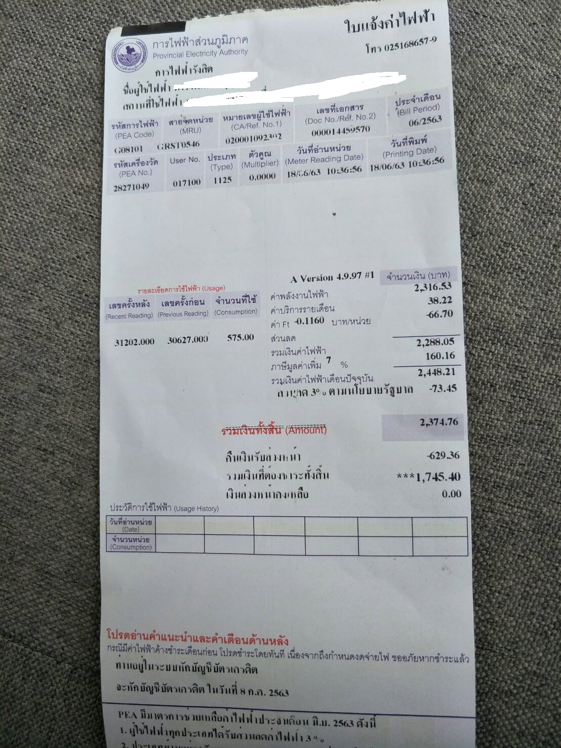 เป็นอย่างที่ว่าอยู่เดือนเดียว บิลค่าไฟเดือนล่าสุด บ้านผมใช้ไฟไป 575 หน่วย ค่าพลังงานไฟฟ้า