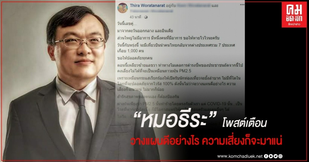คุณหมอธีระ เตือนว่า เราต้องรับมือให้ดี ถ้าเราเปิดรับนักท่องเที่ยวเข้ามาตามความต้องการในการแก้ปัญหาทางเศรษฐกิจก็จะมีความเสี่ยง