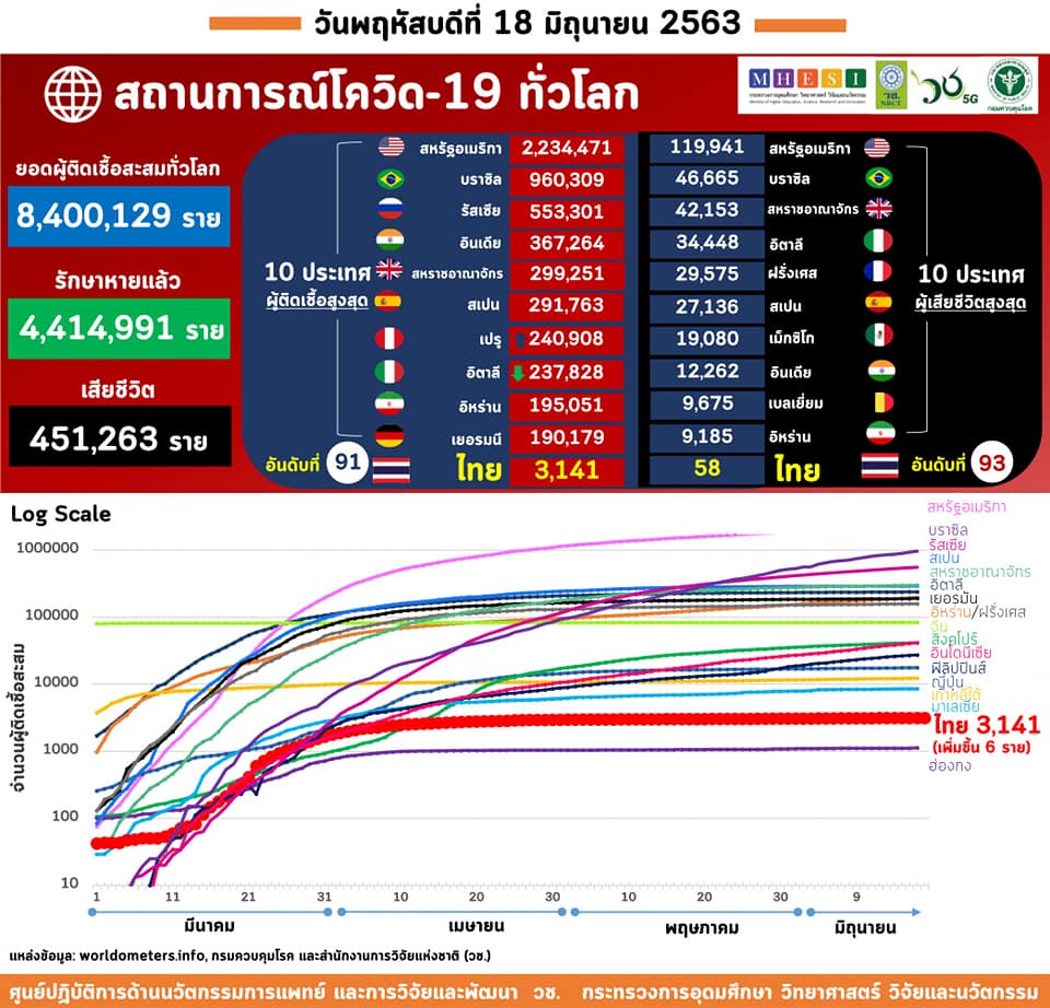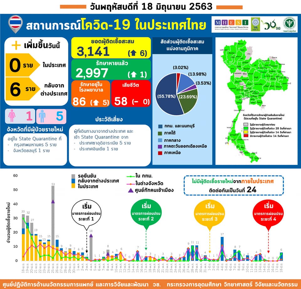 รายงานข้อมูลสถานการณ์การติดเชื้อโควิด-19 ณ วันพฤหัสบดีที่ 18 มิถุนายน 2563