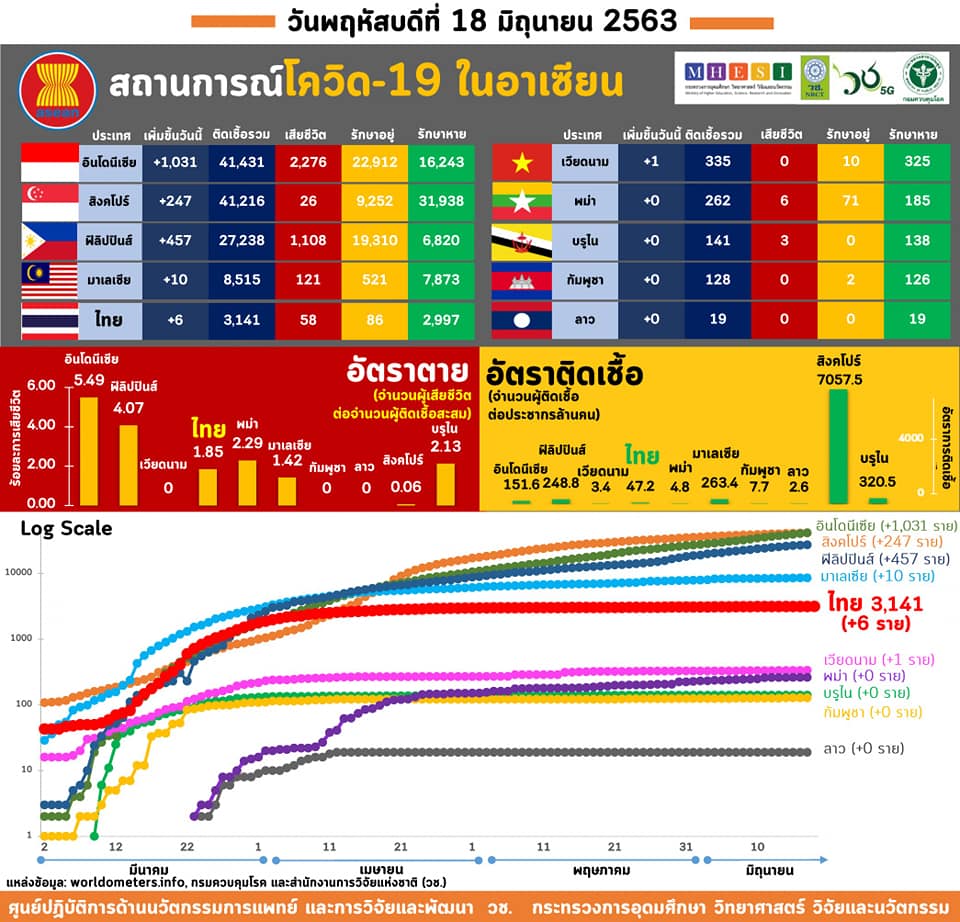 สถานการณ์อาเซียนในวันนี้ ยอดผู้ติดเชื้อของ อินโดนีเซีย มากกว่า สิงคโปร์ แล้ว