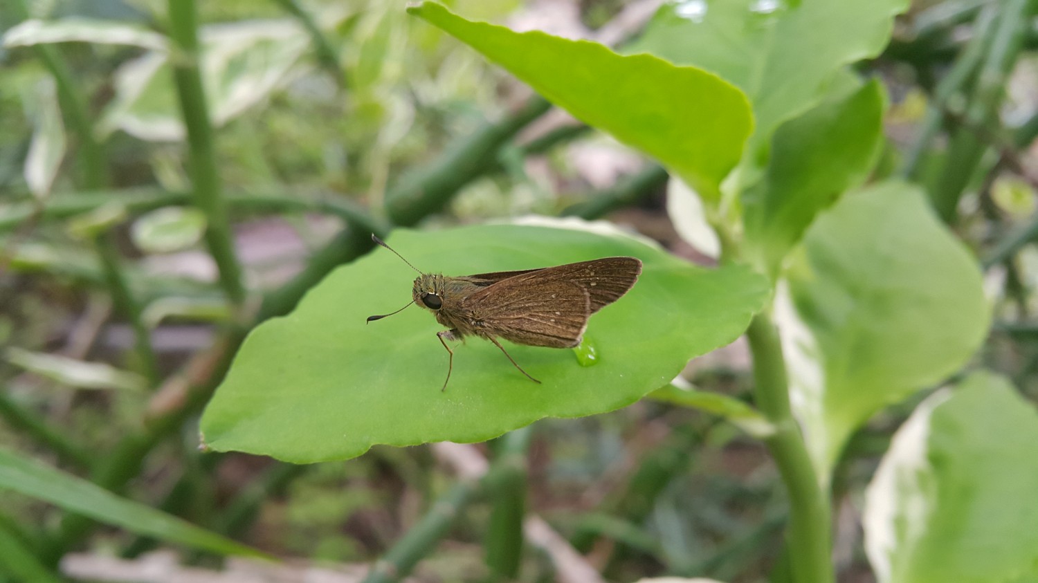 ตัวที่สอง ส่วนตัวผมชอบเรียกผีเสื้อแบบนี้ว่าผีเสื้อจรวดครับ ผีเสื้อหนอนม้วมใบข้าวธรรมดา