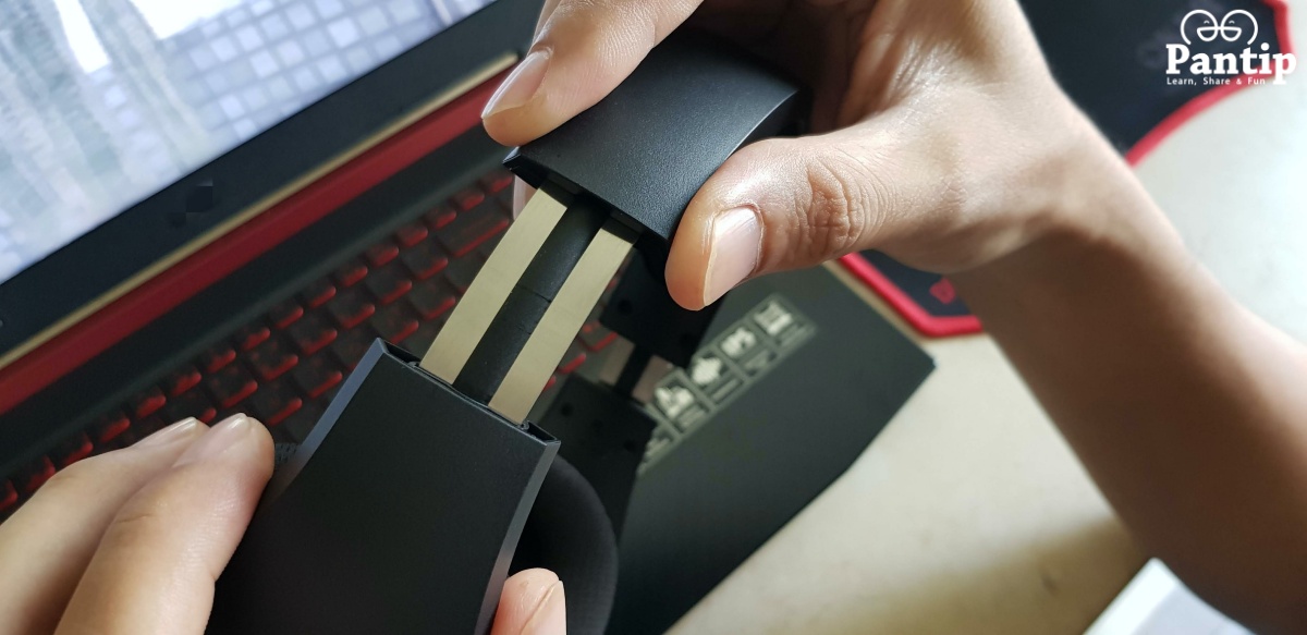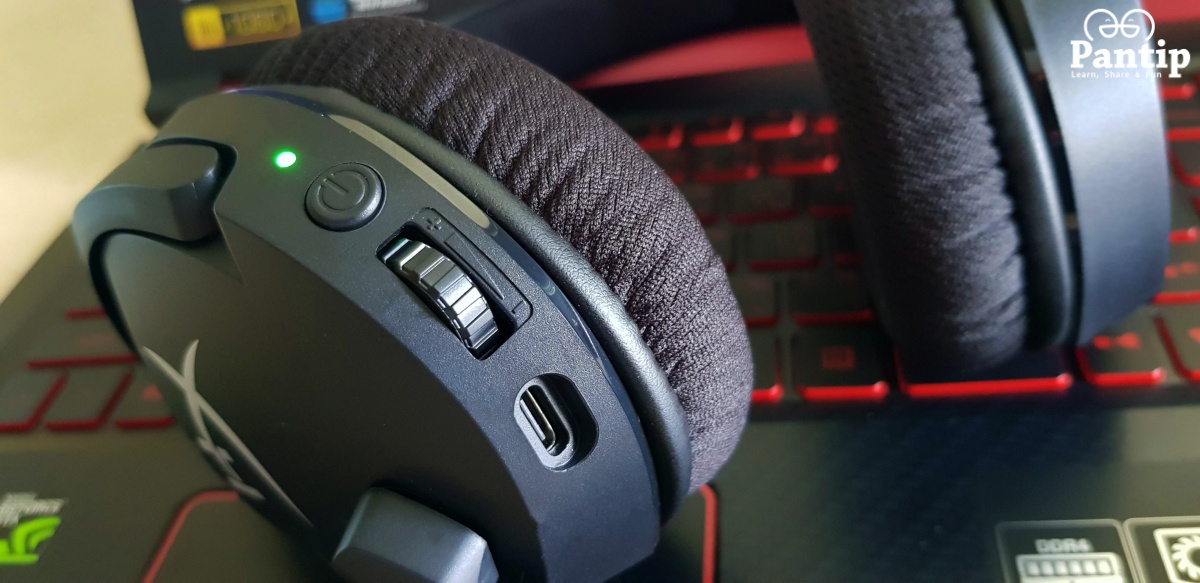 ตัวบอดี้หูฟังดีไซน์เป็นพลาสติกแบบด้านสีดำ พื้นผิวมีความเงา ทดลองเคาะดูพลาสติกมีความแข็งแรง ขอบมุมต่างๆถูกลบเหลี่ยมให้มน ไม่บาดผิวเวลาสัมผัส ด้านบนวางตำแหน่งโลโก้ Hyper X ปั๊มตัวอักษรจมลงไป