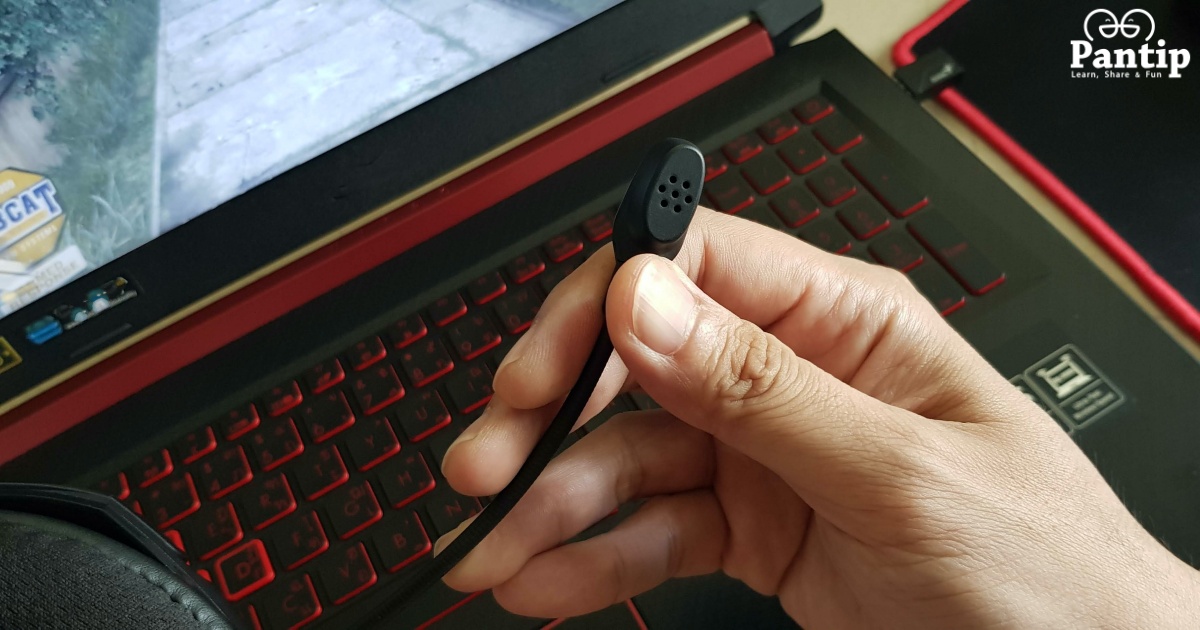 และมีก้านไมโครโฟน สามารถจับปรับบิดงอได้อย่างอิสระ แต่ยืดไม่ได้ การใช้งานเมื่อพับขึ้นจะเป็นการปิดไมค์ (Mute Mic) แต่เมื่อพับลงมาตำแหน่งที่ปากจะเป็นการเปิดไมค์แบบอัตโนมัติ ด้านเสียงที่ได้ยินของไมโครโฟน ค่อนข้างคมชัด โดยเฉพาะเสียงย่านต่ำ การตัดเสียงรบกวน (Noise-cancelling Mic) จากภายนอกทำได้ดีพอสมควร ไม่ค่อยได้ยินเสียงรบกวนจากภายนอกเท่าไหร่ และรุ่นนี้ไม่มีสายให้กวนใจ สามารถเดินไปได้รอบๆ ระยะ 10 เมตร