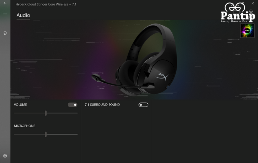 ตัวหูฟังใช้แอป HyperX NGenuity การใช้งานคือ การปรับระดับเสียงหูฟัง และระดับเสียงไมโครโฟน และการเปิดปิดฟังก์ชั่นเสียงแบบ 7.1 Surround เท่านั้น