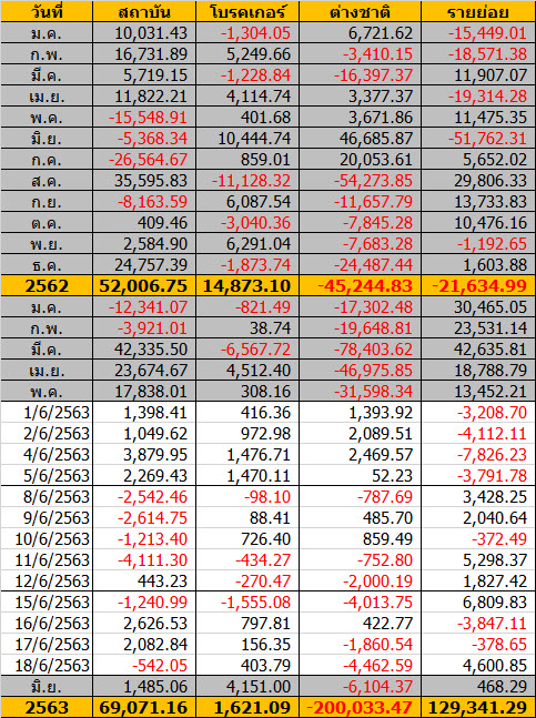 Sinthorn Summary 18/6/2563 : ต่างชาติขายสุทธิ -4,462.59 ลบ.