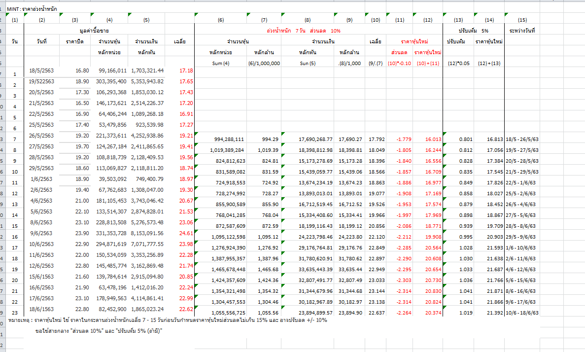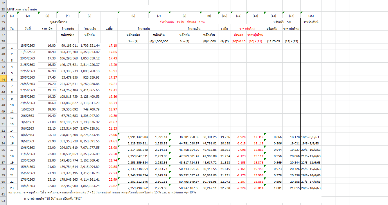 MINT : Update ถ่วงน้ำหนักราคาในกระดานเฉลี่ย 7 และ 15 วัน สิ้นสุด 17/6/2563