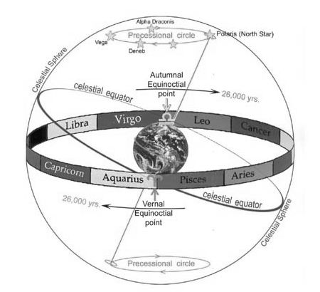 แต่เพราะการหมุนควงของโลก ค่อยๆทดและปรับจุดวิษุวัต ย้ายขึ้นไปกลุ่มดาวราศีมีนช้าๆ และในอีกไม่กี่พันปีจากนี้ไป จุดวิษุวัตก็จะเคลื่อนทดไปยังกลุ่มดาวราศีกุมภ์และมังกรตามลำดับ