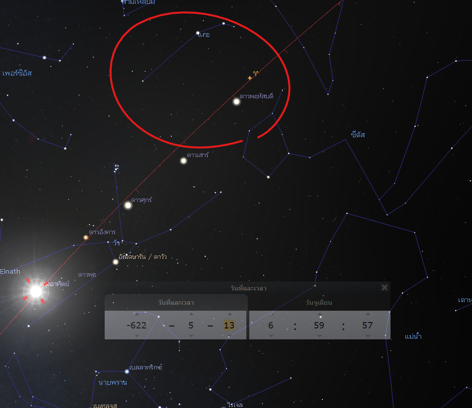 โดยเมื่อประมาณ 2,643 ปีที่ผ่านมา (ช่วงปีที่เจ้าชายสิทธัตถะประสูติ) จุดวิษุวัต ♈ และจุดเข้ากลุ่มดาวราศีเมษเป็นจุดช่วงเดียวกัน ตามภาพด้านล่าง