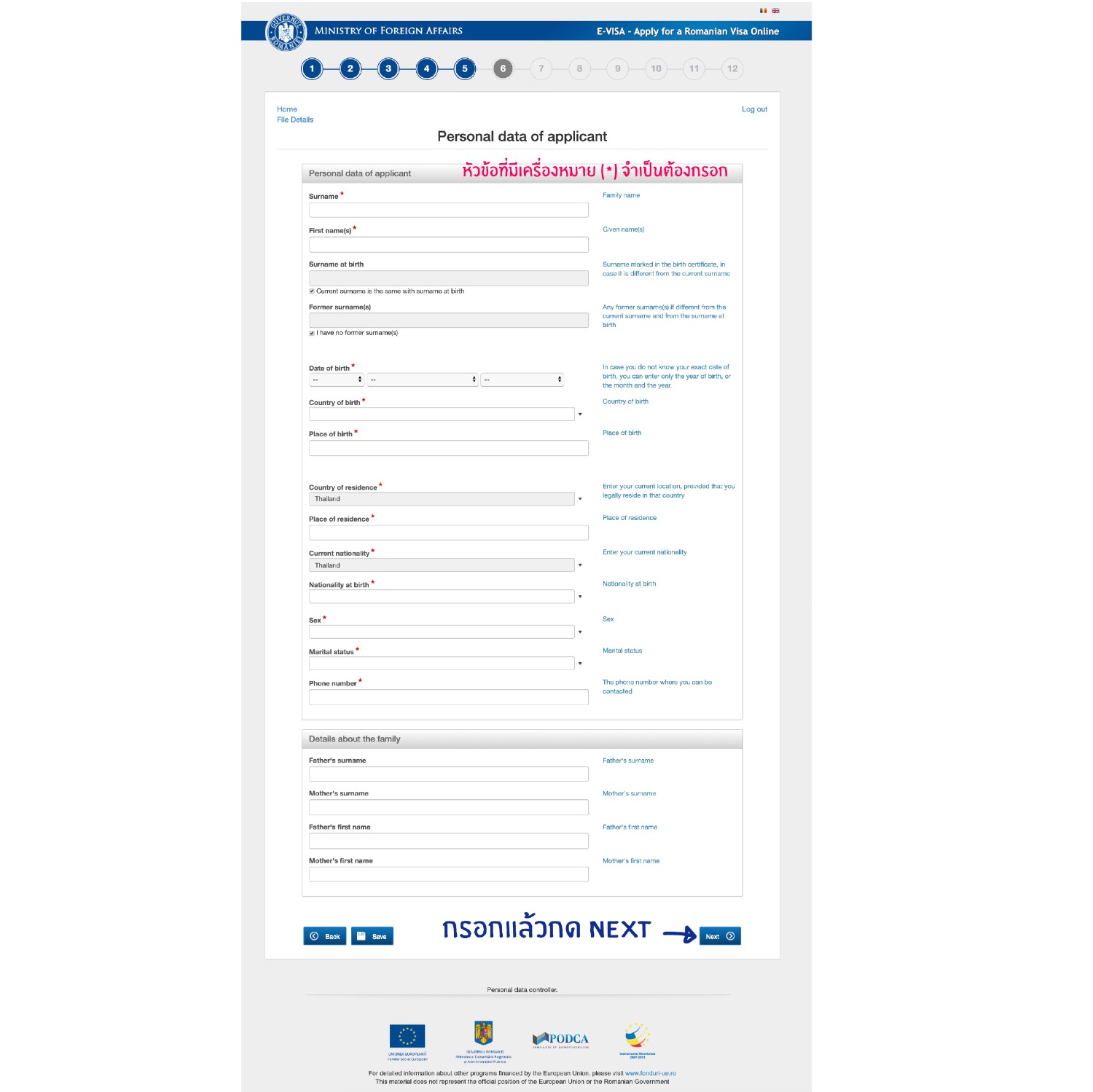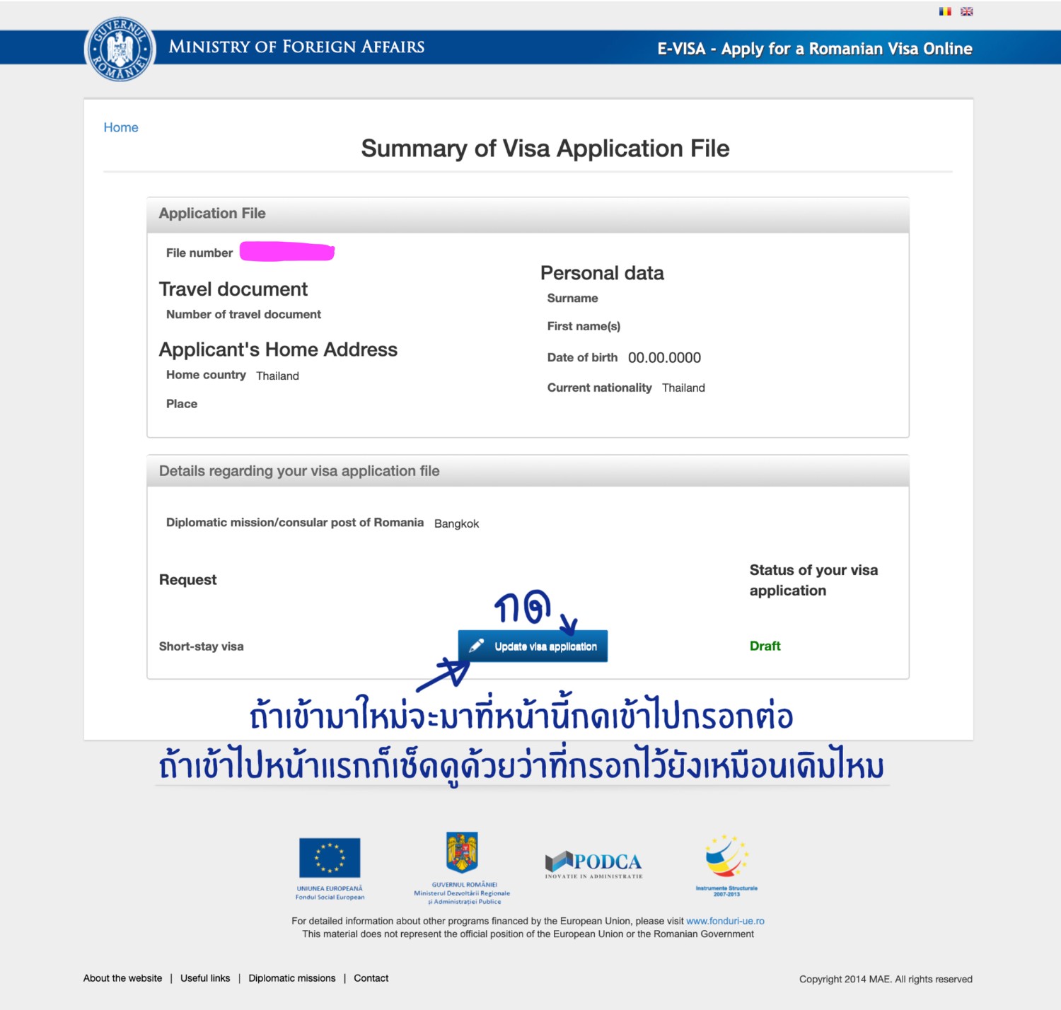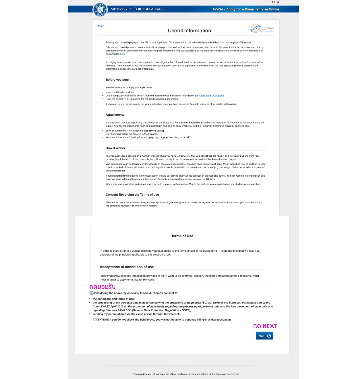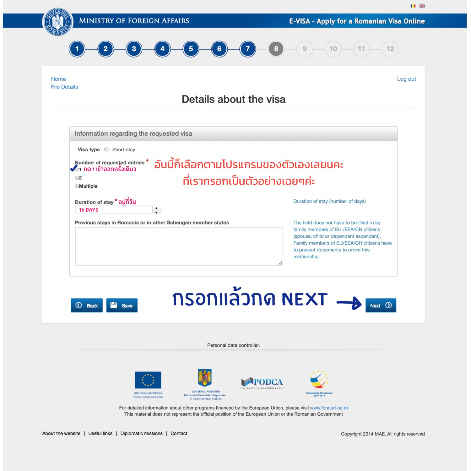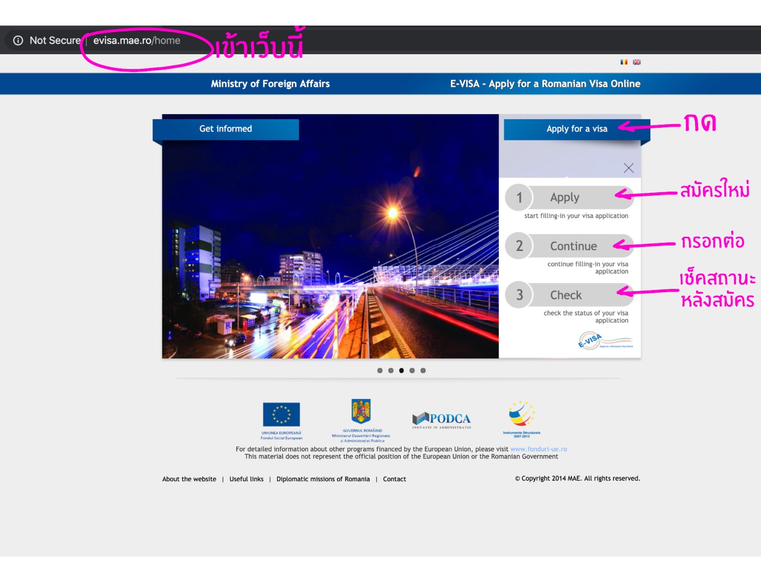 http://evisa.mae.ro/home *เรามีรูปตัวอย่างการกรอกให้ในตอนท้ายนะคะ*