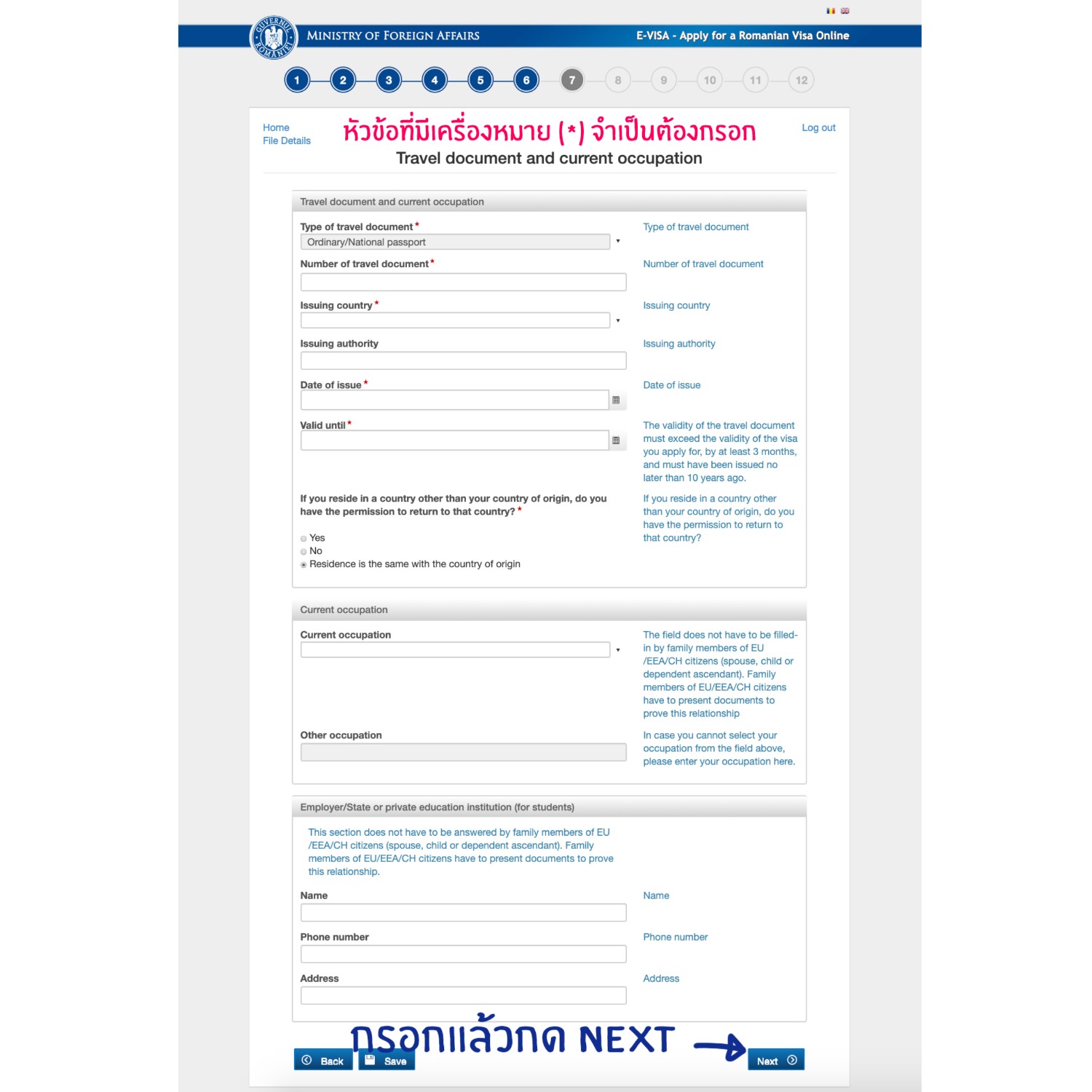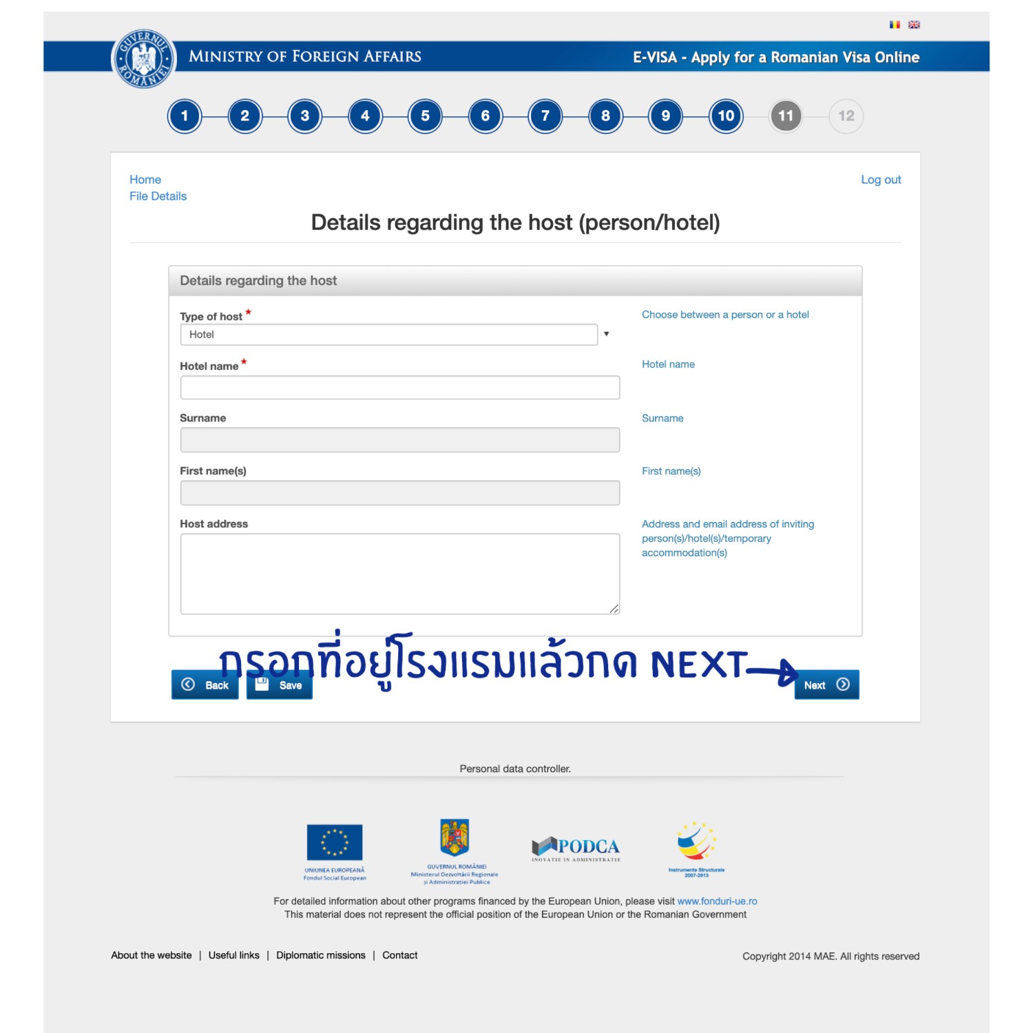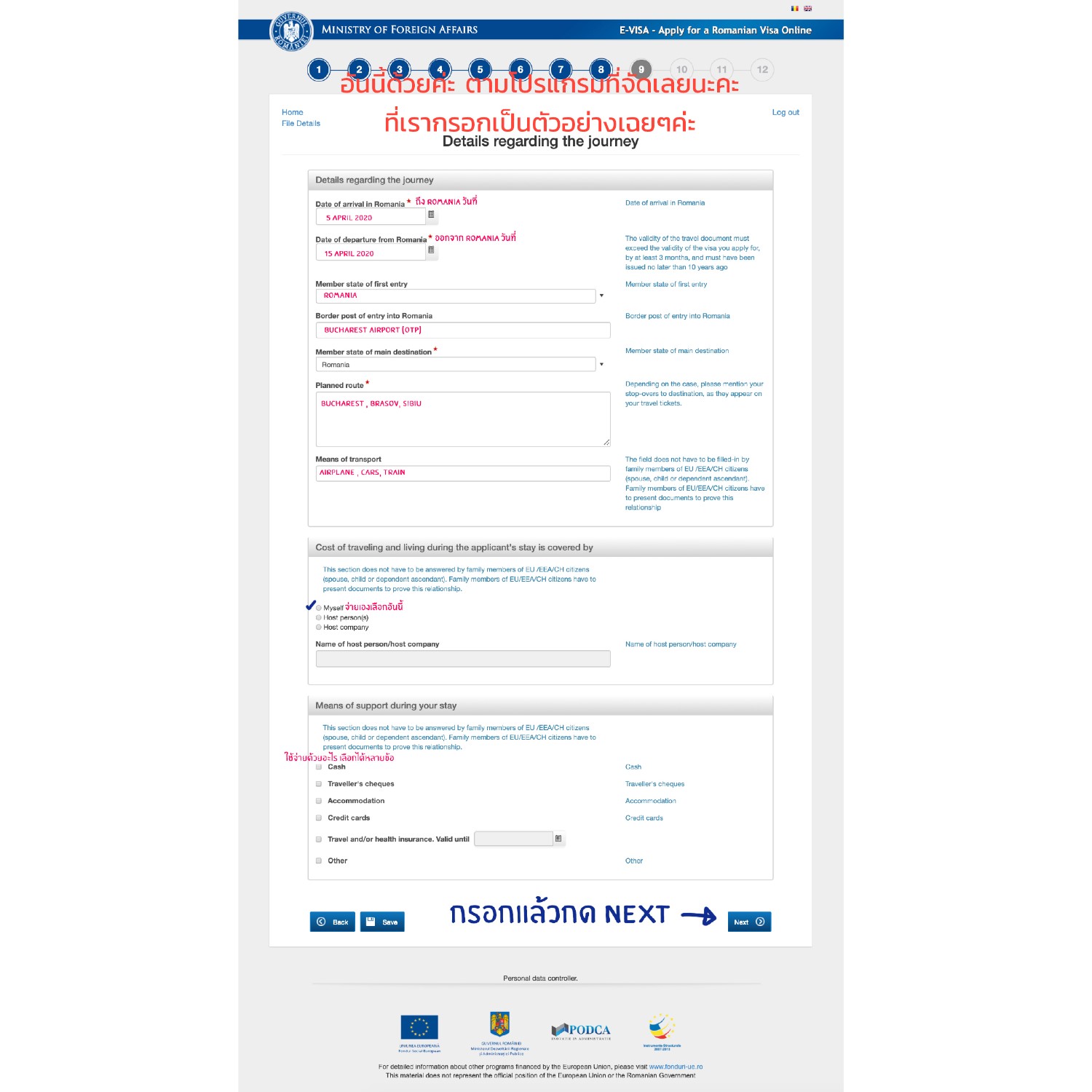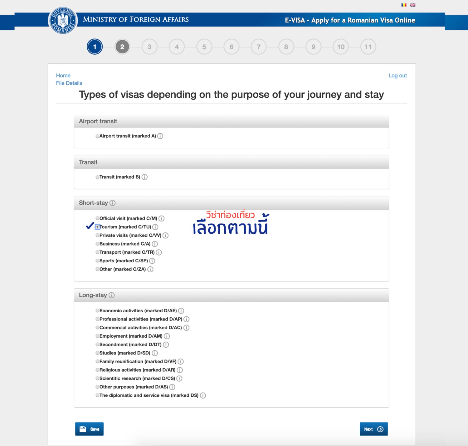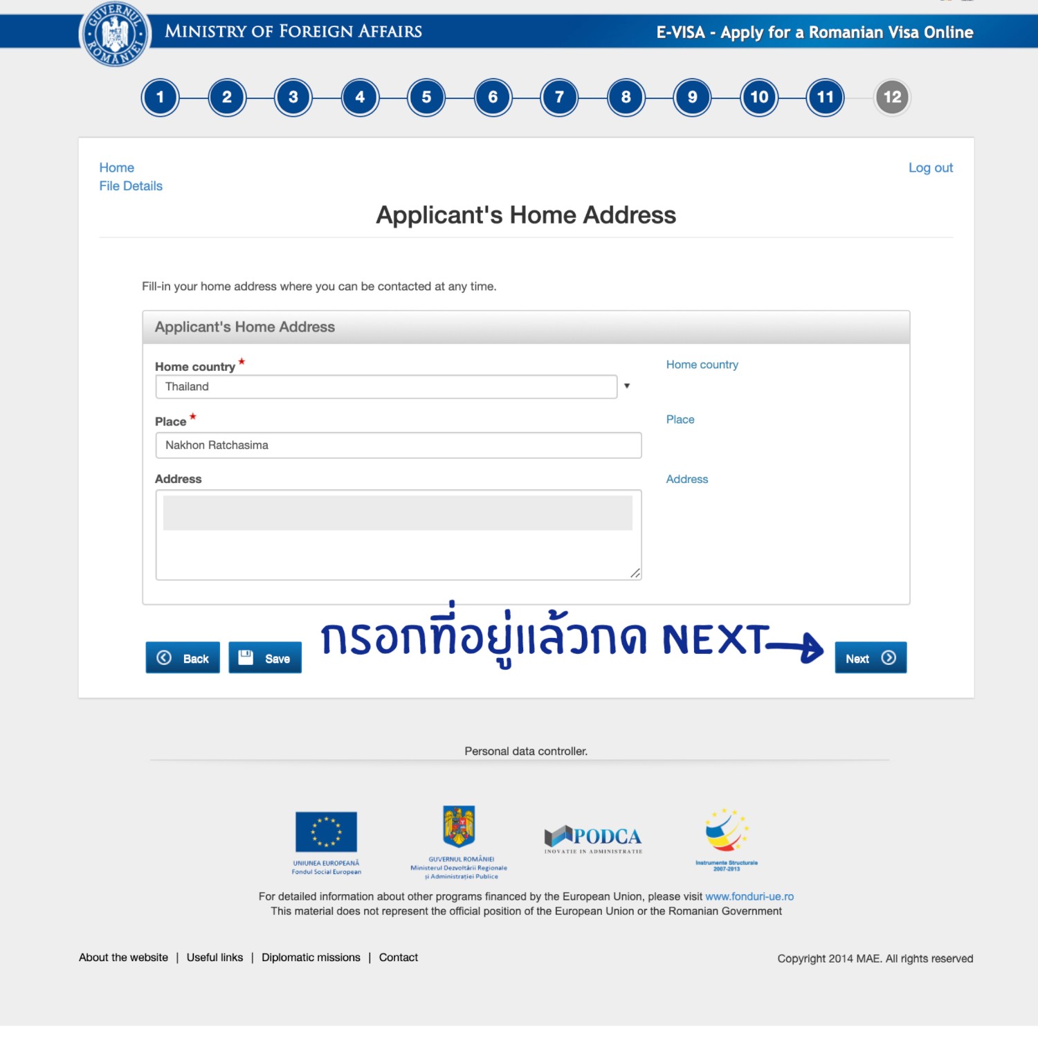 http://evisa.mae.ro/home *เรามีรูปตัวอย่างการกรอกให้ในตอนท้ายนะคะ*