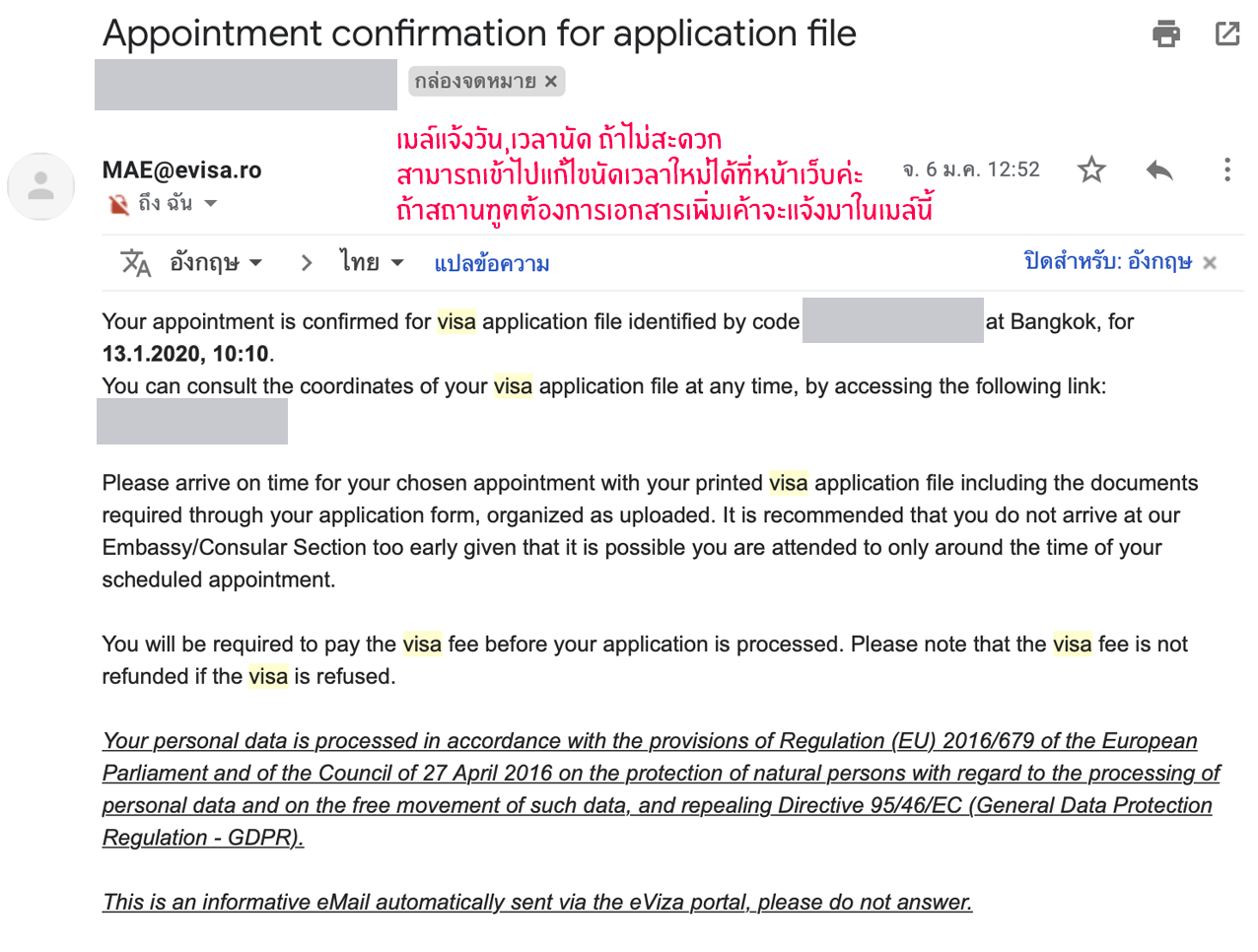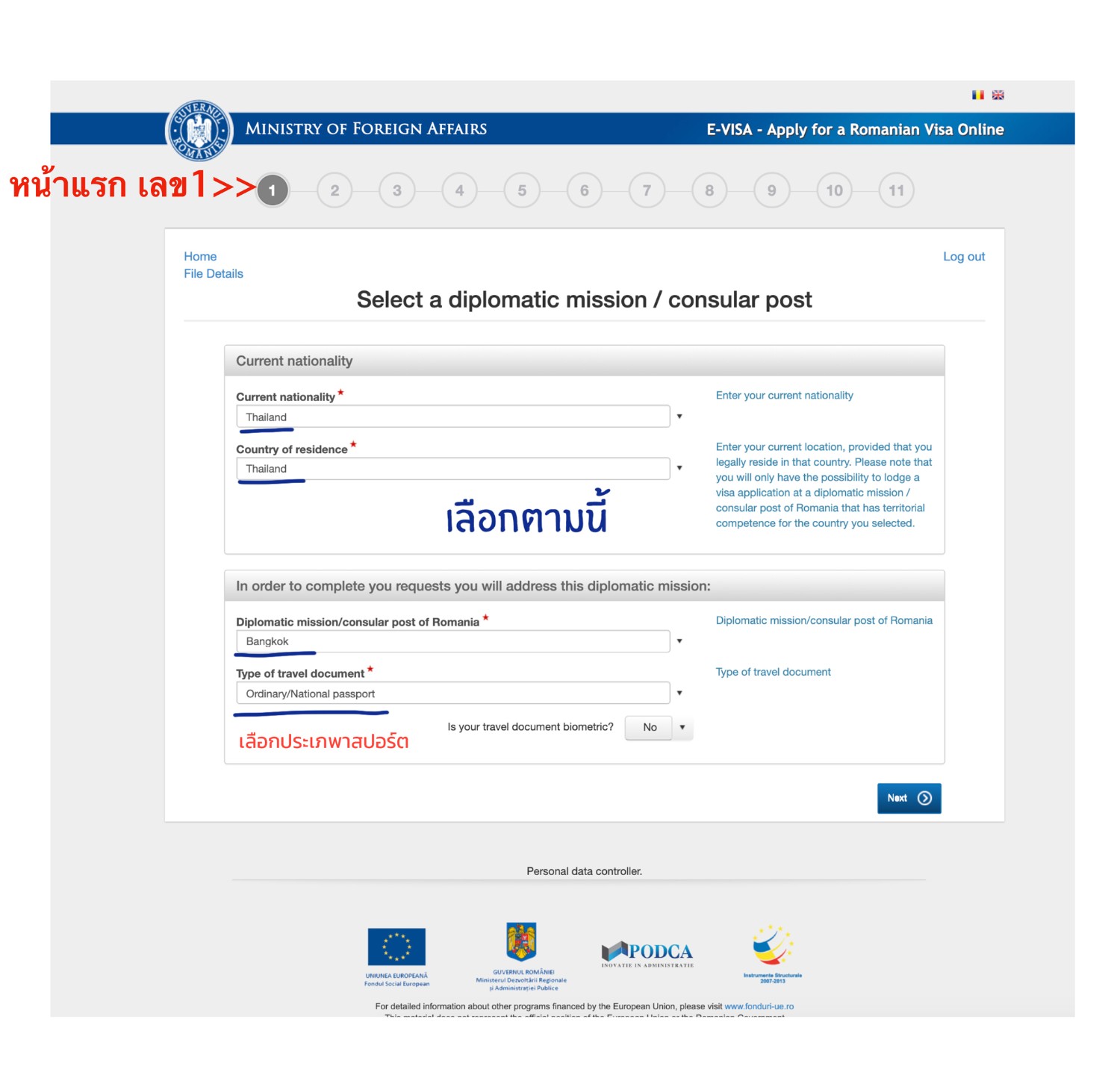 3. เข้าไปที่สถานฑูตโรมาเนียประจำประเทศไทยเพื่อยืนยันตัวตนตามวันเวลาที่สถานฑูตนัด