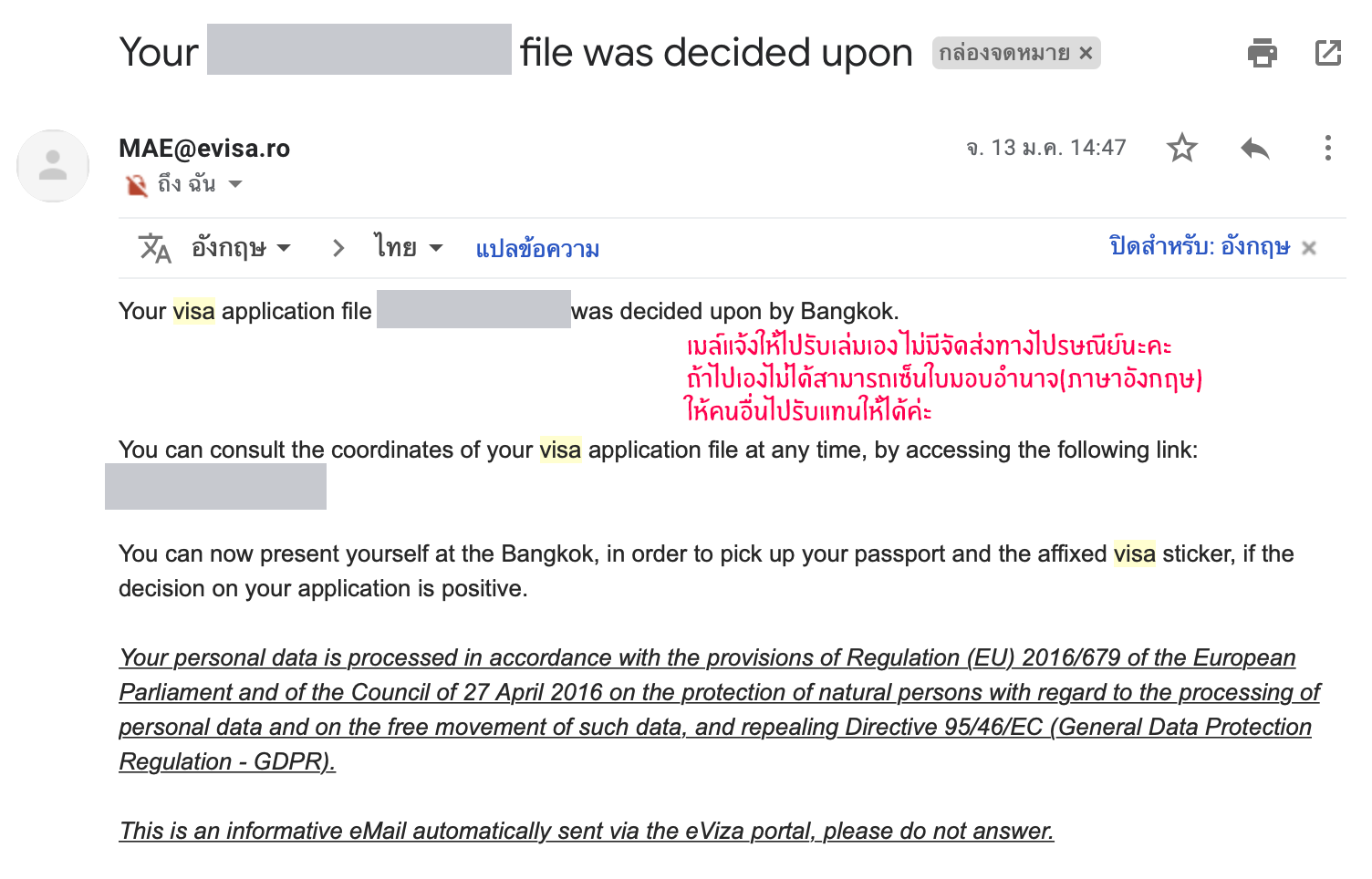 สรุป พวกเราได้รับเล่มเรียบร้อยพร้อมวีซ่าวันรุ่งขึ้นค่ะ ไม่มีการส่งไปรษณีย์นะคะ ต้องไปรับเองเท่านั้น ถ้าไม่สามารถไปรับเล่มเองด้วยตัวเองได้สามารถเซนใบมอบอำนาจเป็นภาษาอังกฤษให้คนอื่นไปรับแทนได้ค่ะ