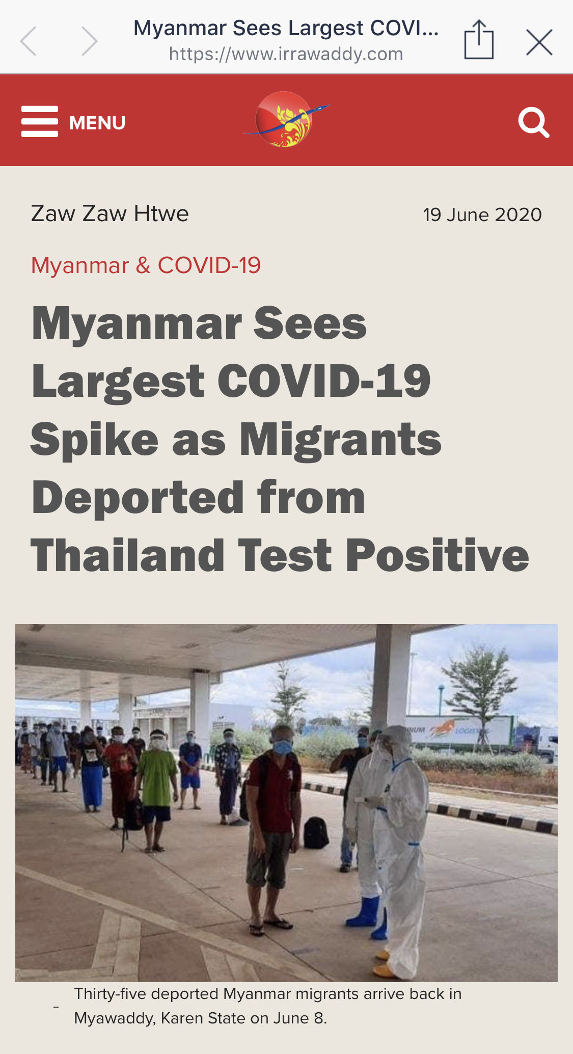 วันนี้ทางการพม่าได้รายงานผู้ติดเชื้อใหม่ COVID-19 จำนวน 23 คน เดินทางกลับจากไทย ซึ่งส่วนใหญ่เป็นผู้หลบหนีเข้าเมือง และถูกทางการไทยส่งกลับประเทศ...คำถามคือคนพม่าเหล่านั้นไปติดโรคมาจากไหน ในขณะที่ผู้ติดเชื้อใหม่ในไทยเป็น 0 มานานถึง 3 สัปดาห์