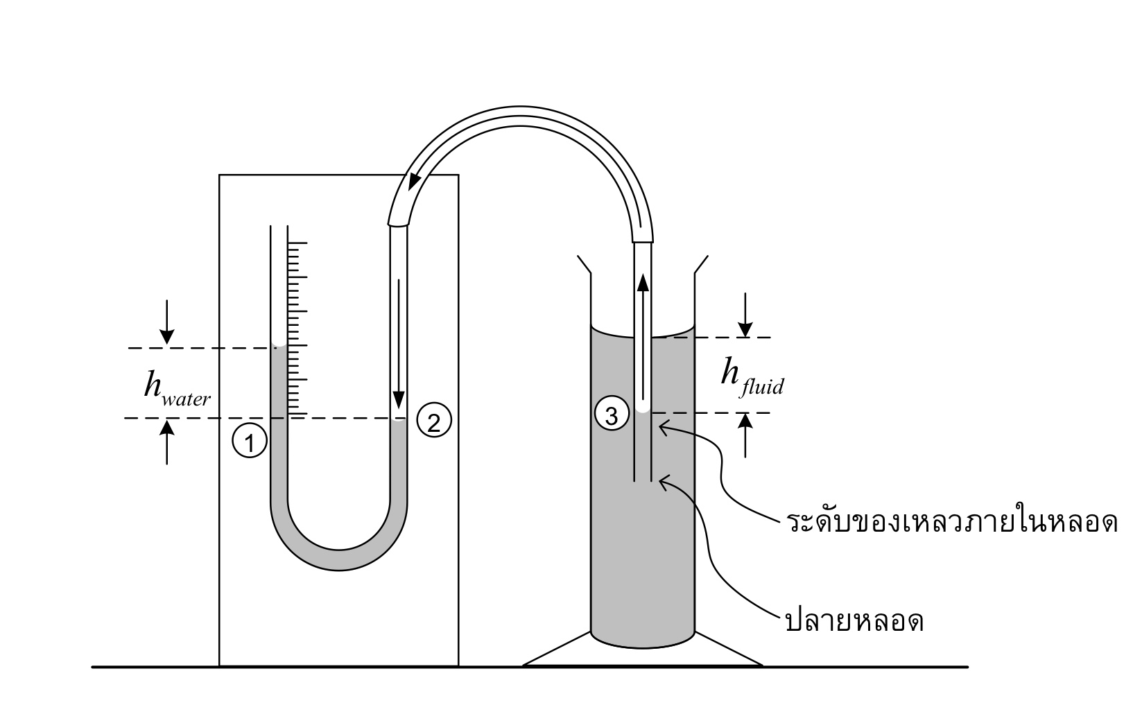 ความหนาแน่นของน้ำ x h water = ความหนาแน่นของเหลว x h fluid