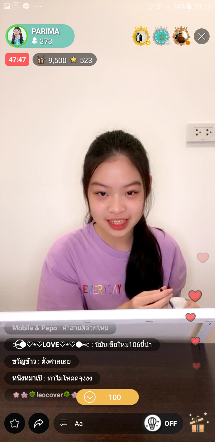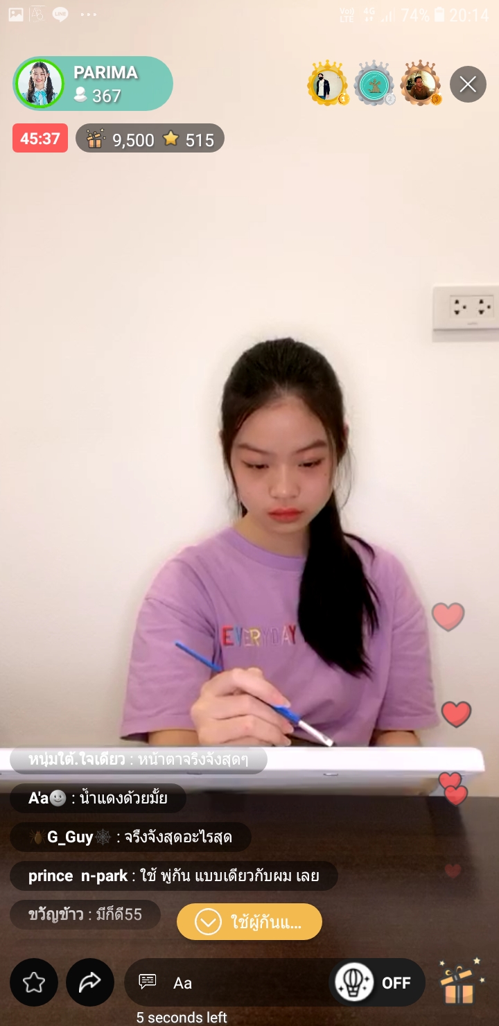 น้อง ปะริมะวาดรูปใน live .. น่ารักมากๆ กล้องวันนี้ แสง ฉาก ชุด สวยครบเลย มาวาดรูปกัน พู่กันสีเดียวกันเลย