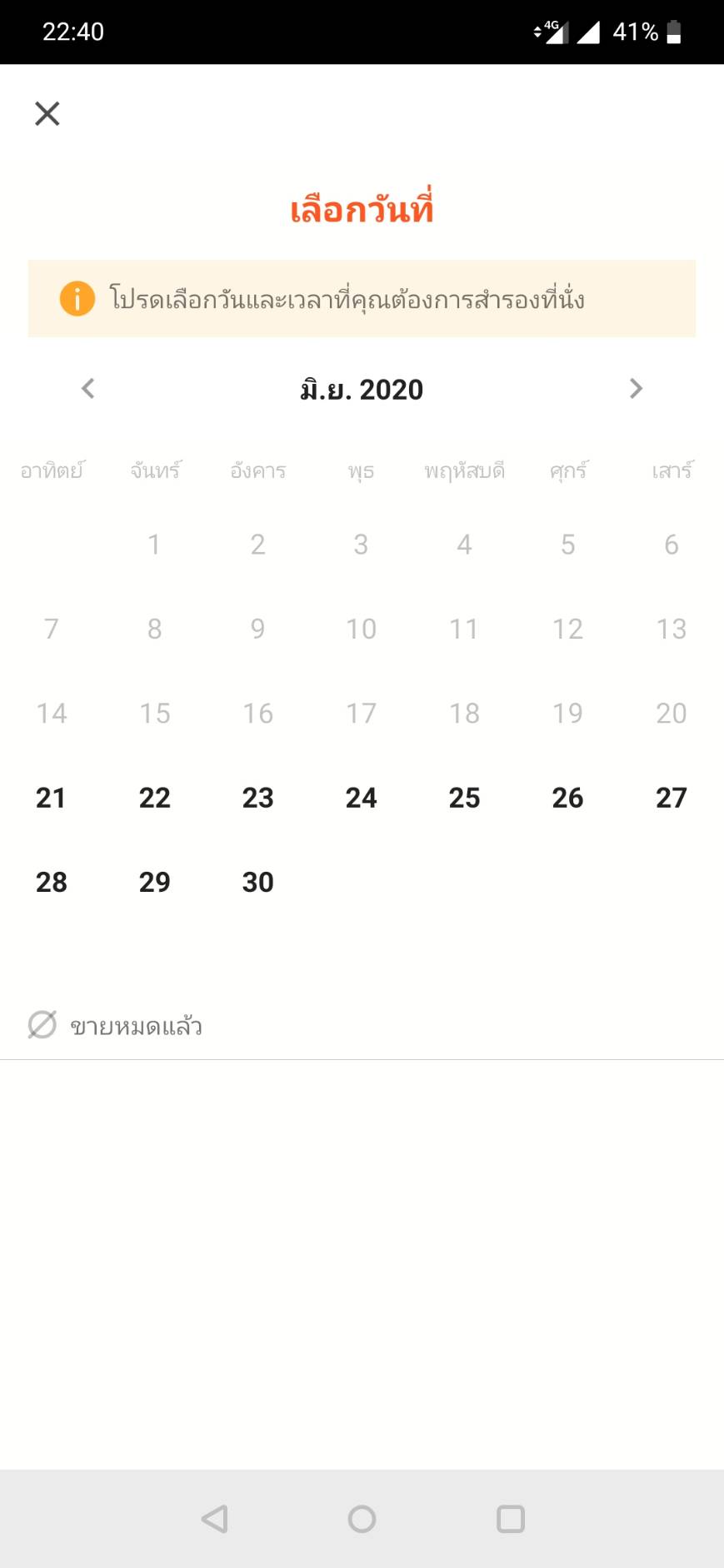 3. หลังจากเลือกเมนูอาหารก็เลือกวันและเวลาได้เลย